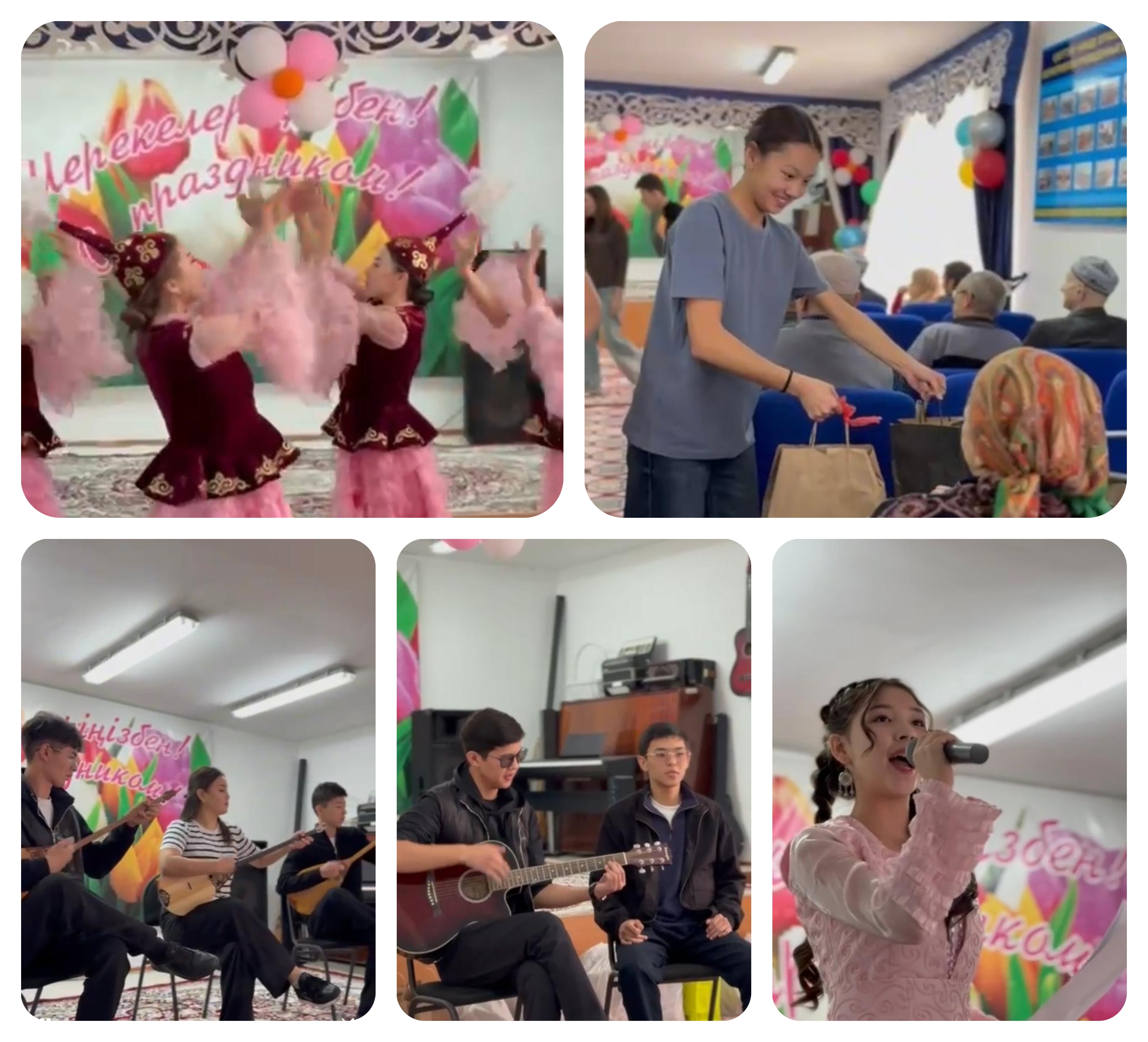 First-year students of the Pharmacy and Medicine faculties took part in the event, preparing a concert program and thoughtful gifts for the residents. The program included traditional Kazakh kyuis played on the dombra, heartfelt songs such as “Zhan Syrim”, “Ana”, and “Atameken”, as well as folk dances and a youth flash mob.