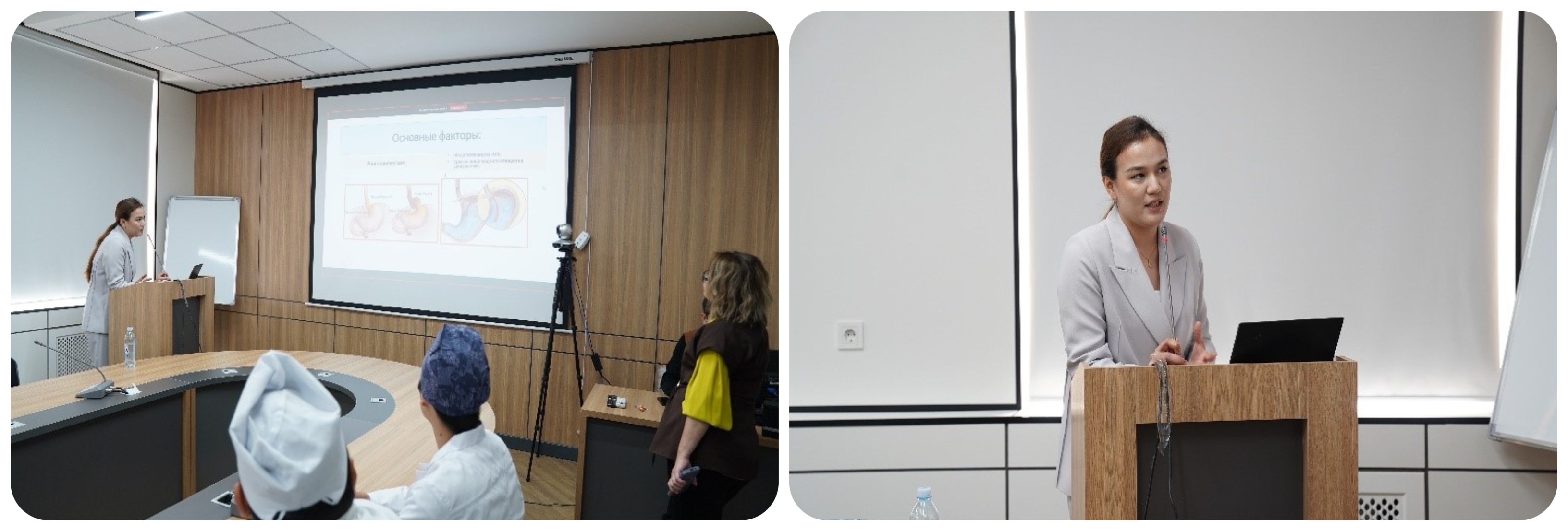 During the round table, the presenter A. Ubaidina thoroughly covered the issues of the etiology and pathogenesis of Gastroesophageal Reflux Disease (GERD). Relying on research findings from both domestic and international studies, she provided an analytical overview of recent scientific data on the relevance of GERD and the modern approaches to its classification used worldwide, including in Kazakhstan.