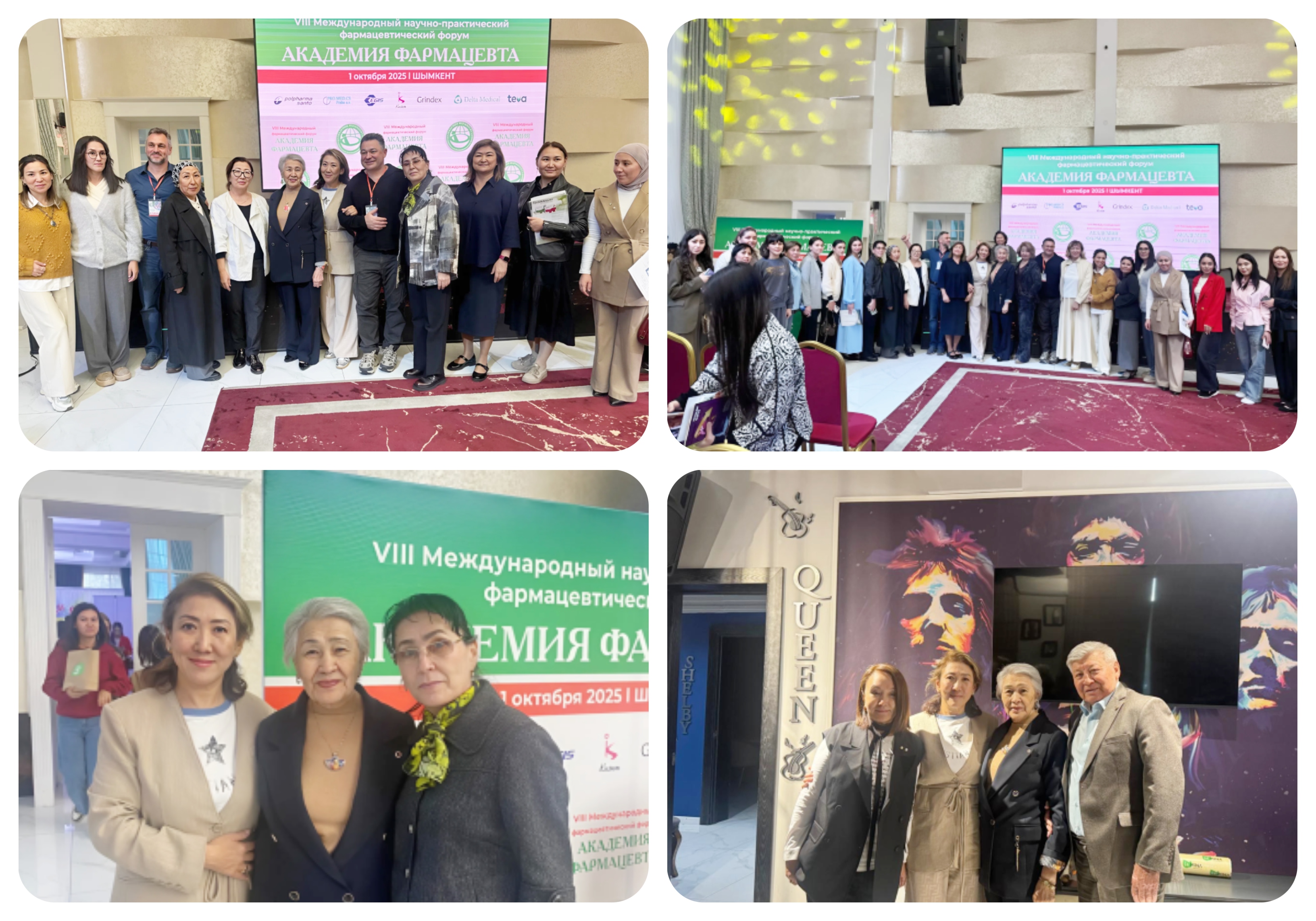 On October 1, 2025, the VIII International Pharmaceutical Forum “Academy of the Pharmacist” was held in Shymkent, bringing together leading specialists in the fields of pharmacy and clinical pharmacology. The faculty members of the Department of Pharmacology, Pharmacotherapy, and Clinical Pharmacology of the South Kazakhstan Medical Academy (SKMA) actively participated in the forum.
