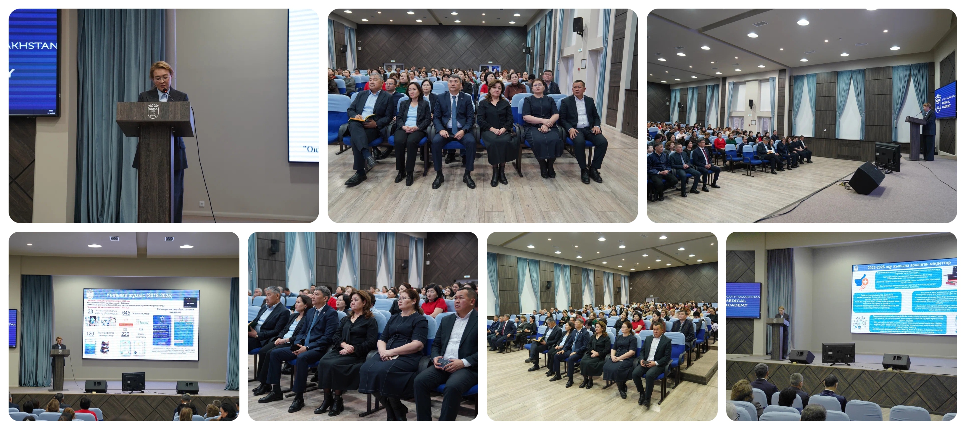 The Rector of the South Kazakhstan Medical Academy, Zhanna Seitjanova, presented a report on the results of 2025. During the presentation, key priorities outlined in the Address of the Head of State, Kassym-Jomart Tokayev, titled “Kazakhstan in the Era of Artificial Intelligence: Key Challenges and Their Solutions through Fundamental Digital Transformation”, were highlighted. In particular, the Academy has been consistently implementing the principles of fairness, development, technological progress, and investment in human capital.