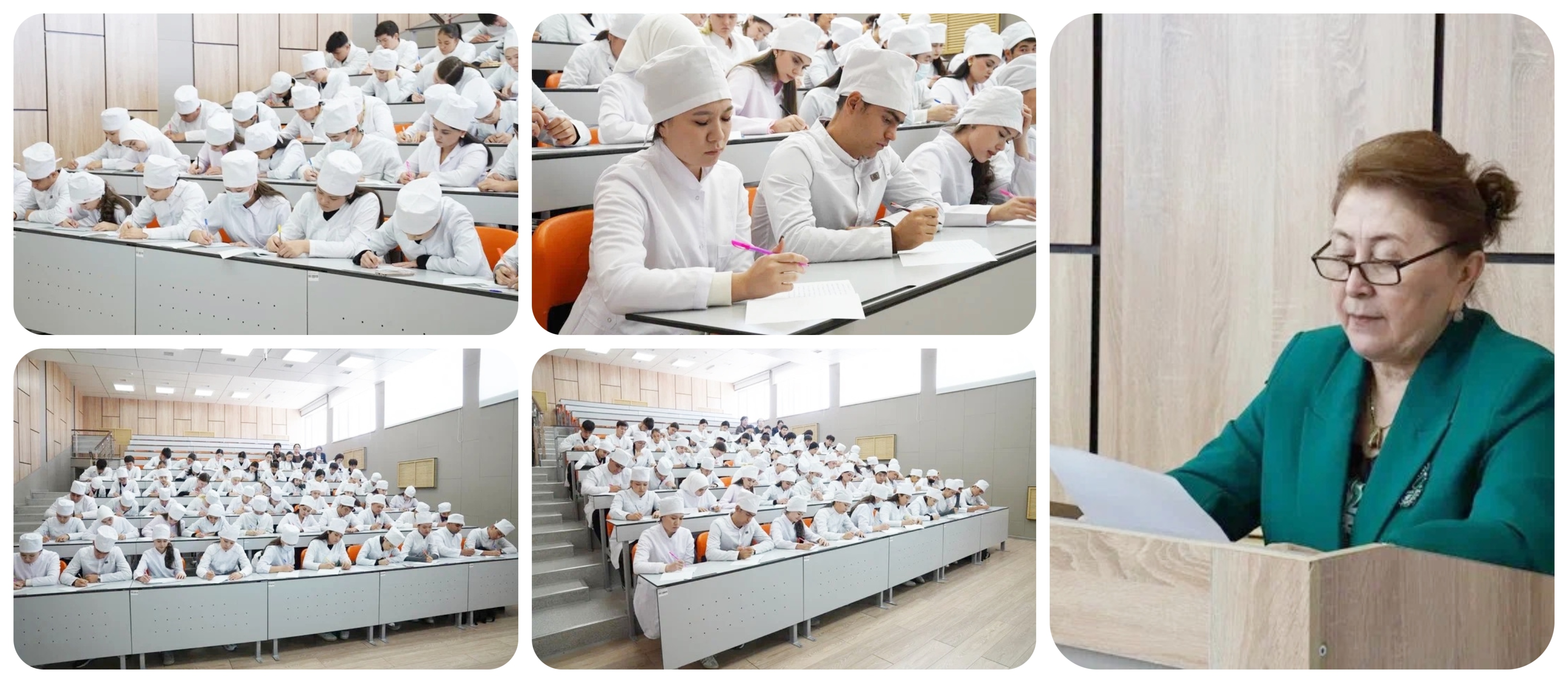 Currently, as part of the “Law and Order” concept, a nationwide legal dictation is being held across all regions of the country to promote legal literacy. Students of the Faculty of Pharmacy and the Faculty of Medicine at South Kazakhstan Medical Academy actively participated in this initiative by writing a dictation on the topic “When the Law Prevails — the Nation Stands Tall.” It should be noted that the main goal of the event is to enhance young people’s legal awareness, foster respect and responsibility toward the law, and strengthen the legal culture in society. The dictation was conducted by Candidate of Philological Sciences, Acting Associate Professor of the Department of Kazakh, Russian, and Latin Languages, G. K. Temirbekova.