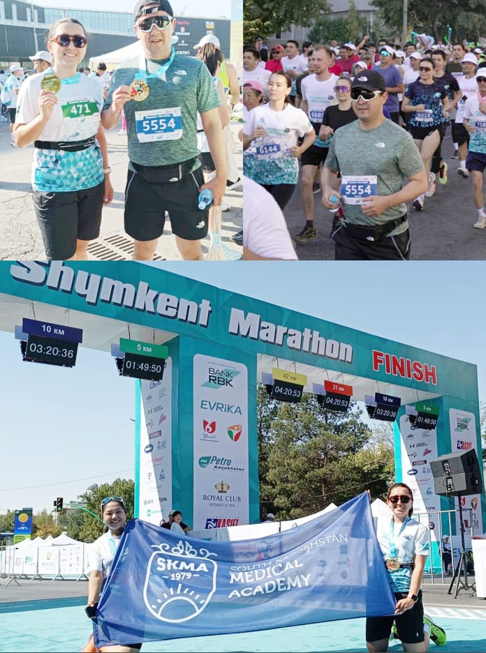 Shymkent Marathon has already become more than just a sporting event – it is a brand that promotes the ideas of a healthy lifestyle, mass sports, and sports tourism.At the starting line stood professional athletes as well as amateurs, students, schoolchildren, and entire corporate teams. Every year, this event turns into a true celebration of sports and energy: the vibrant atmosphere, musical accompaniment, and the support of fans and volunteers create a special motivation for every participant. The SKMA team wanted to demonstrate by their own example how important it is to promote running and an active lifestyle, to strengthen team spirit, to develop mass sports, and to foster a culture of health.
