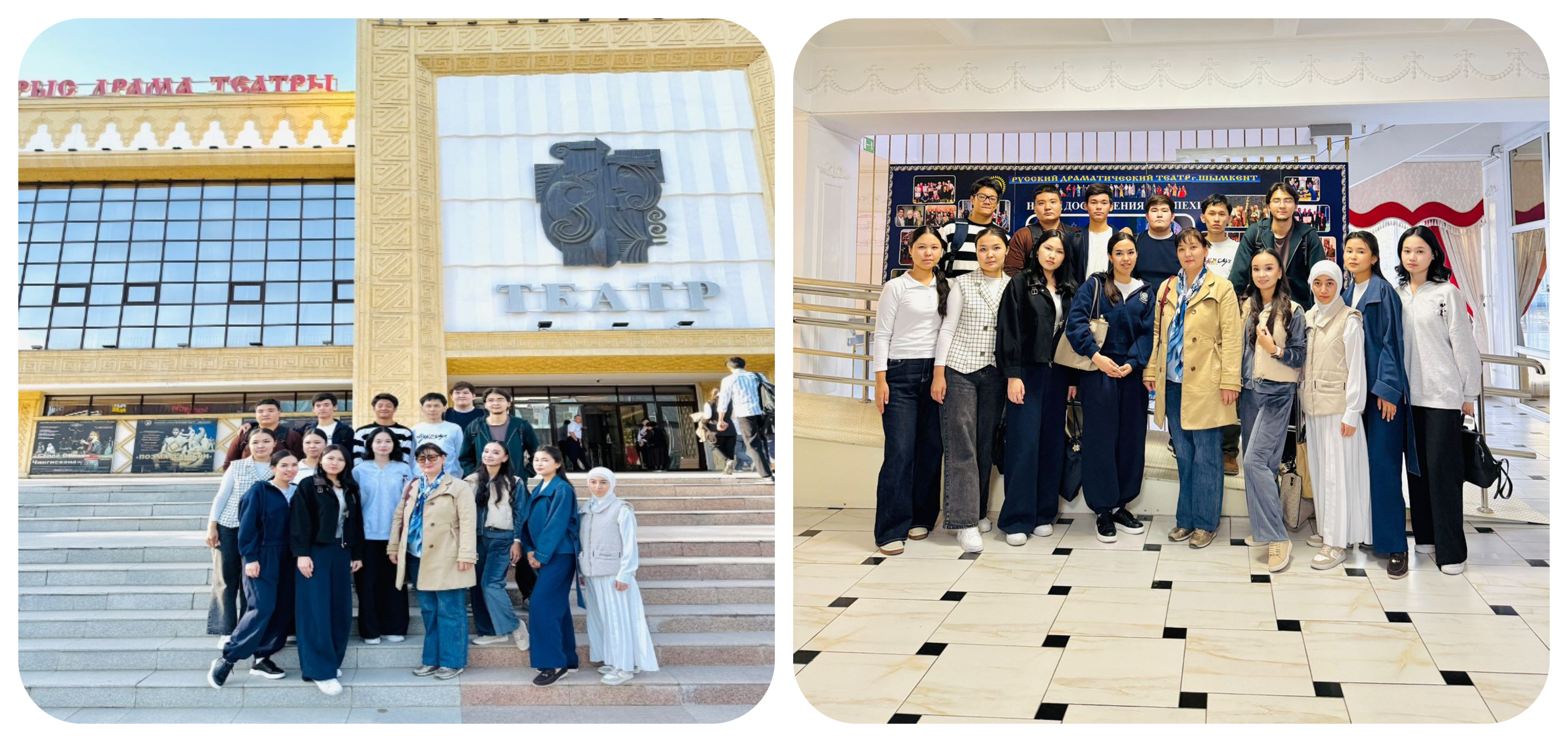 On October 9, 2025, at 4:00 PM, the group BM-MKB 02-25, together with lecturers from the Department of Foreign Languages, attended a theatrical musical performance titled "The Only Melody in My Eyes" ("Жанарымдағы жалғыз әуен") presented by the Youth Theater of Astana. The performance centered on themes of nostalgia for childhood, life in the village, and longing for grandparents, among other heartfelt memories. The main purpose of the theater visit was spiritual and cultural development. While at the theater, the students enriched their inner world: the performance encouraged them to reflect on eternal values such as life, love, justice, honor, and dignity. Thanks to the actors’ sincere and emotional performances, the students experienced a wide range of emotions — joy, sorrow, love, hope, and fear. They immersed themselves in the atmosphere of live art, which creates a completely different impression compared to movies or books. For our students, this cultural experience fostered a sense of community, strengthened friendships, and served as an effective and meaningful way to spend their free time.