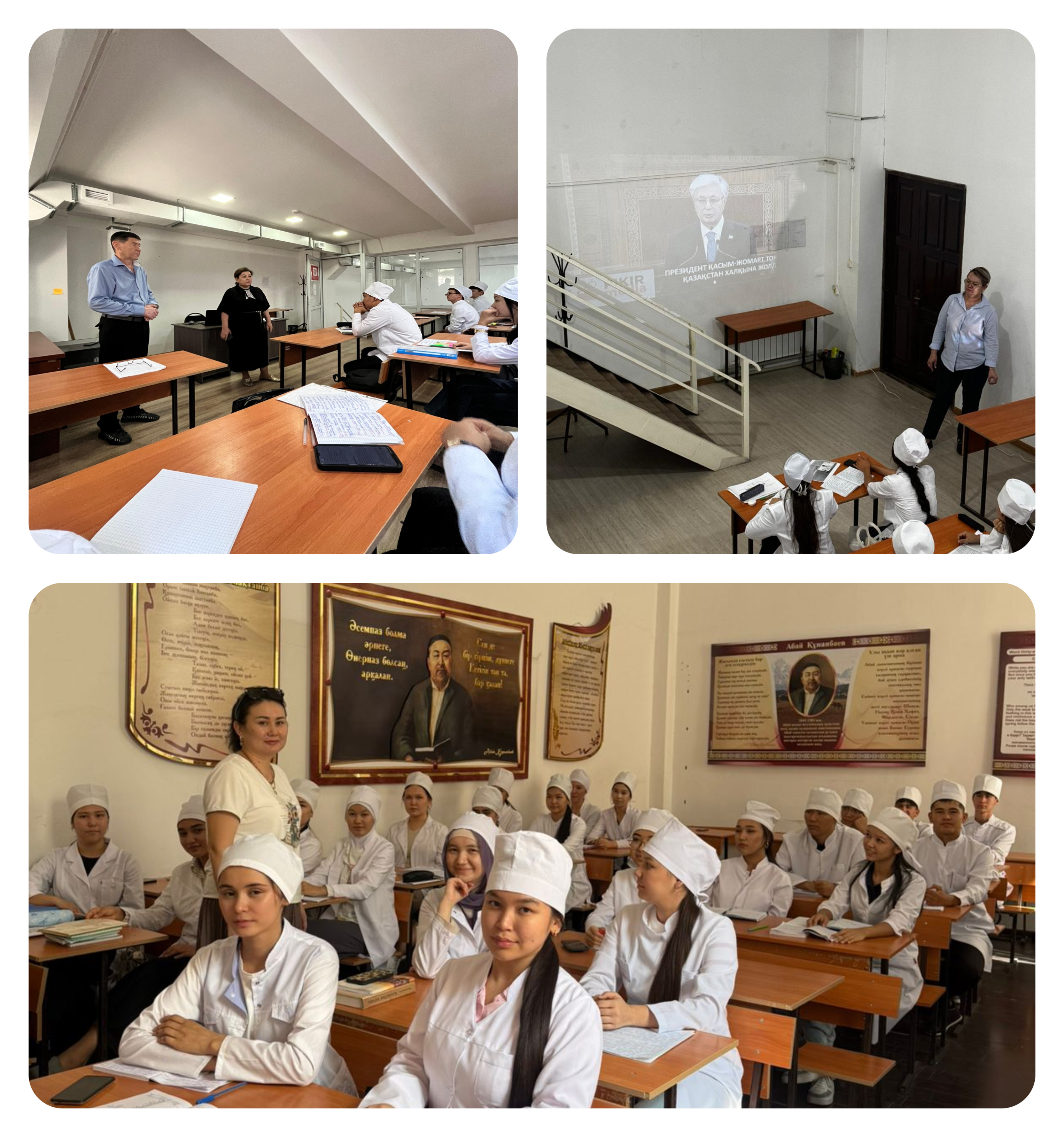 The teaching staff of the Department of History of Kazakhstan and Socio-social Disciplines together with the 1st year students of the Faculty of Medicine and Pharmacy discussed the annual message of the Head of State Kassym-Jomart Tokayev to the people of Kazakhstan "Kazakhstan in the era of artificial intelligence: current challenges and their solutions through digital transformation." This meeting is aimed at increasing the patriotic consciousness of students, preserving ethical norms and culture in the public environment, a deep understanding of the requirements of the digital age, as well as the formation of a younger generation contributing to the development of the new Kazakhstan. The message emphasized the importance of improving the quality of training of competitive, leadership and innovative specialists with high professional and personal qualities in the field of medicine and pharmacy.