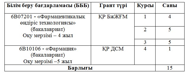 Білім беру бағдарламалары бөлінісінде бос гранттар бойынша ақпарат (бакалавриат)
