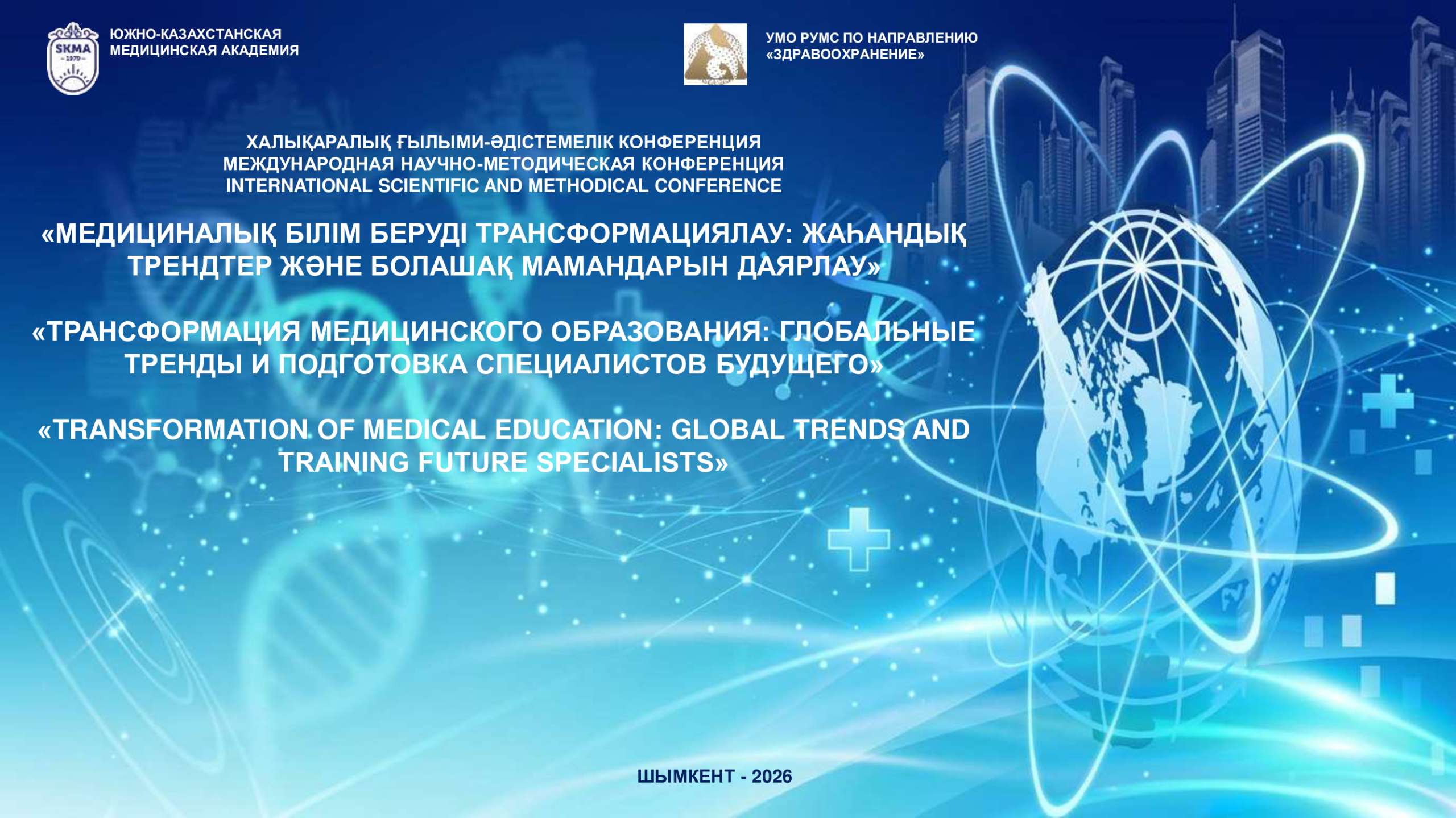 «Оңтүстік Қазақстан медицина академиясы» АҚ Денсаулық сақтау – дайындық бағыты бойынша Республикалық оқу-әдістемелік Кеңестің оқу-әдістемелік бөлімімен бірлесе, Сіздерге құрмет көрсете отырып, Сіздердің профессор, оқытушы, жас ғалымдарыңыздың секция отырысында сөз сөйлеуі үшін, 2026 жылы 17 сәуірде өтетін «Медициналық білім беруді трансформациялау: жаһандық трендтер және болашақ мамандарын даярлау» тақырыбындағы Халықаралық ғылыми-әдістемелік конференцияға қатысуға шақырады.
