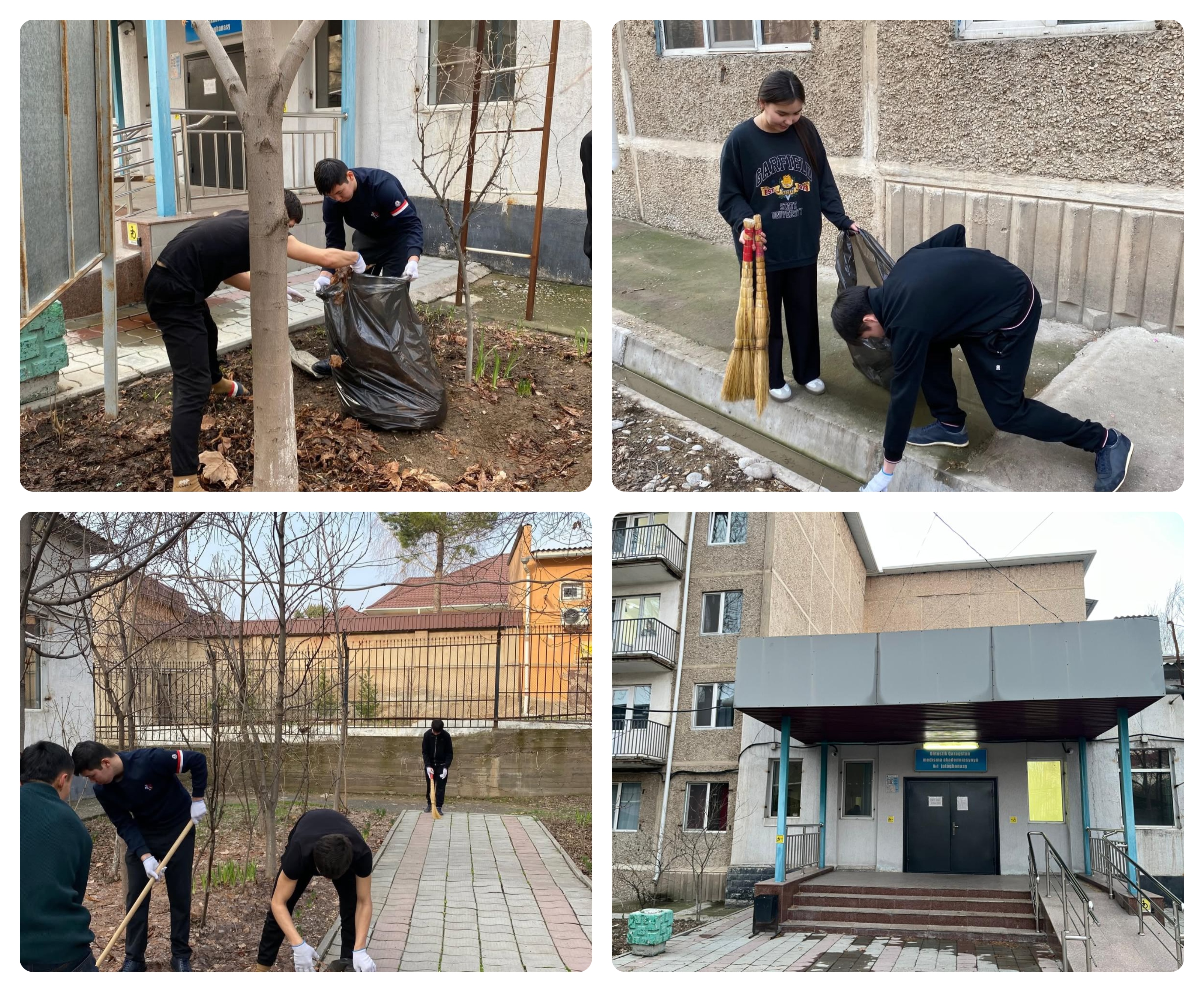 20 ақпан 2026ж Оңтүстік Қазақстан Медицина Академиясының Қазақ, орыс және латын тілдері кафедра В-ТФП-103 топ студенттері №1 жатақхана ауласында сенбілік өткізді. Студенттер аумақты тазалап, қоқыстарды жинап, айналаны ретке келтірді. Олар тазалық – денсаулық кепілі екенін түсініп, белсенділік танытты.