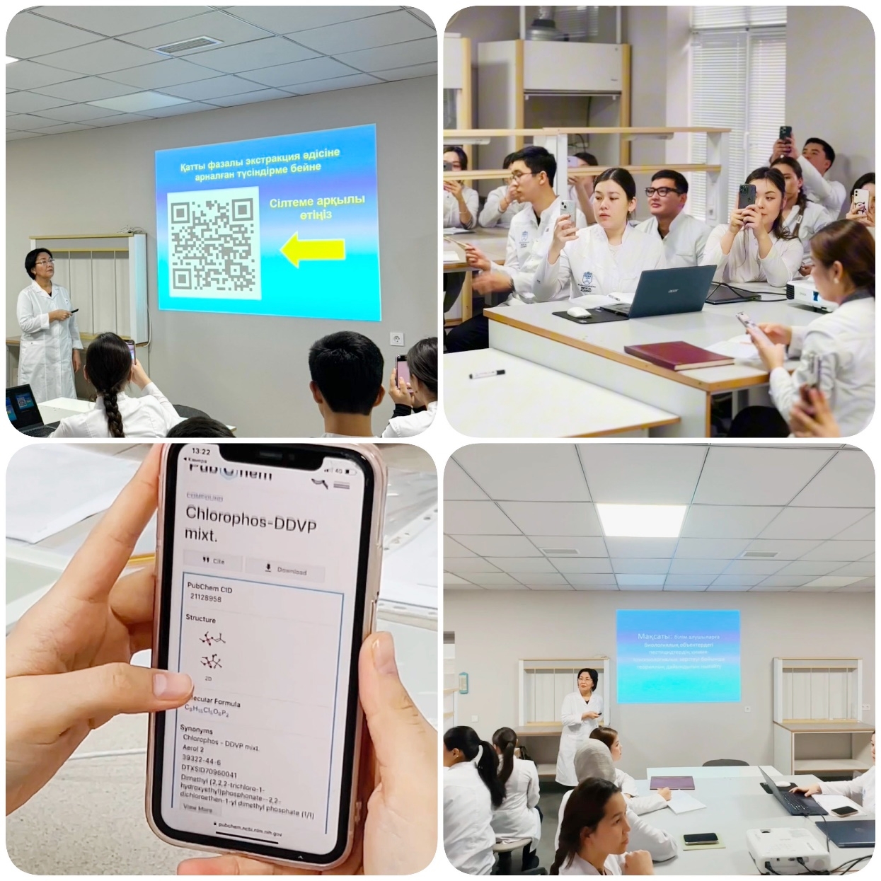 Сабақ барысында токсиканттарды оқшаулау бойынша инновациялық әдістерге ерекше назар аударылды. QR-код жүйесі арқылы студенттер заманауи сынама дайындау технологияларының оқу материалдары мен көрнекі сызбаларына қол жеткізді. Олардың ішінде: қатты фазалы экстракция, дисперсиялық сұйық-сұйық микроэкстракция және QuEChERS жүйесі қамтылды.