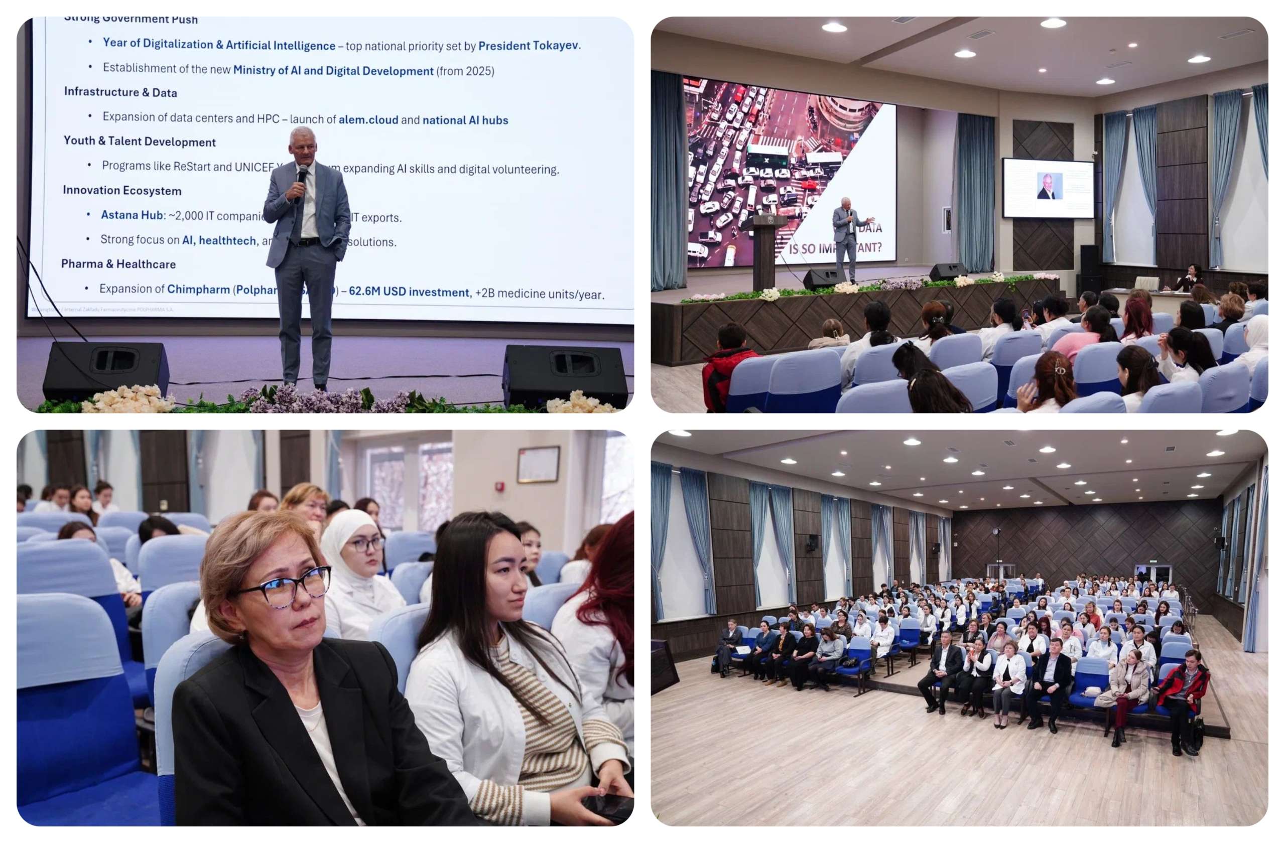 Сапар аясында Томас Нотеггер «Фармацевтикалық өндірістегі жасанды интеллект (ЖИ)» тақырыбында дәріс оқыды. Дәріске «Фармацевтикалық өндіріс технологиясы» білім беру бағдарламасының студенттері, «Фармация» білім беру бағдарламасының магистранттары мен докторанттары, сондай-ақ ОҚМА профессор-оқытушылар құрамы қатысты.