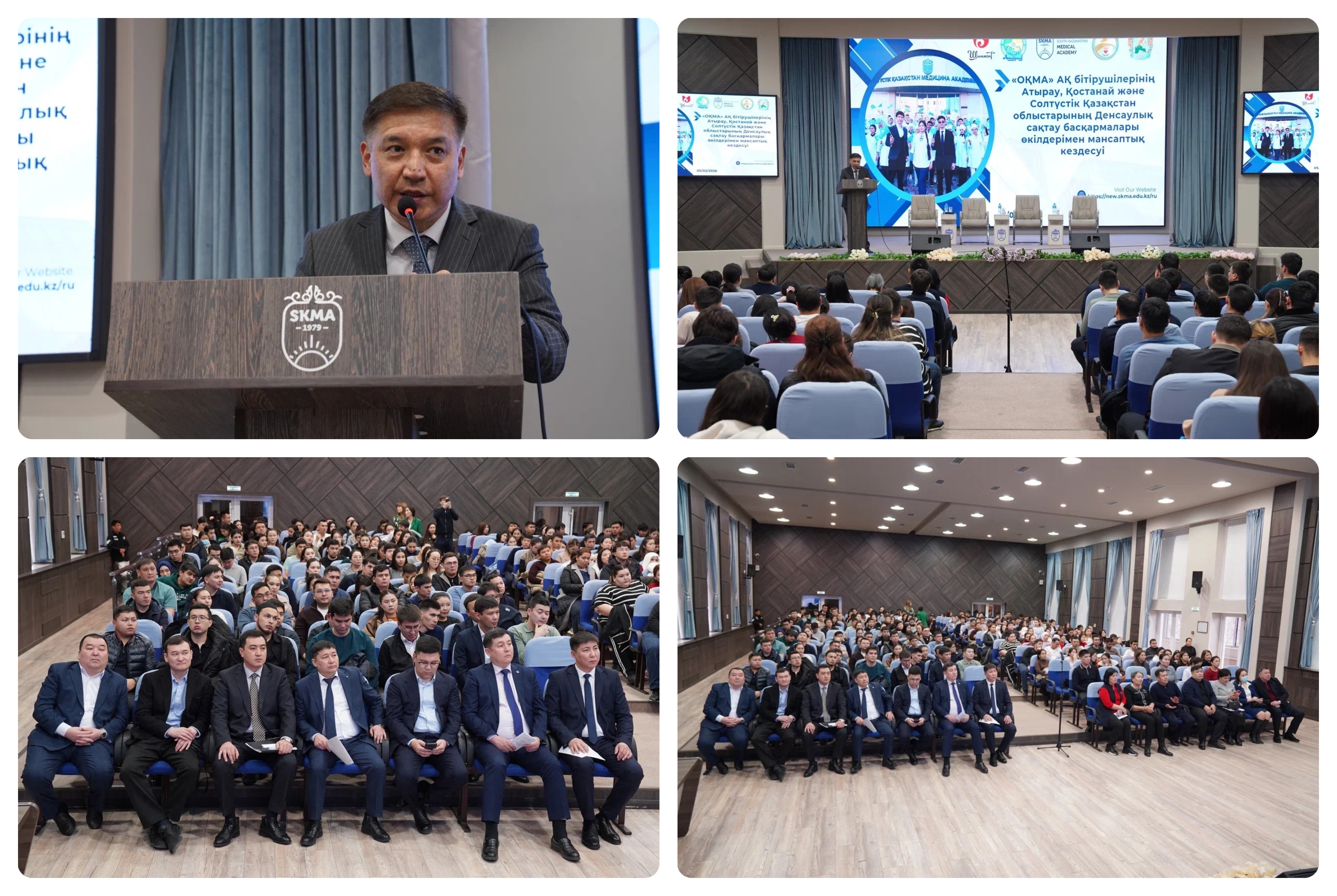 «Оңтүстік Қазақстан медицина академиясы» АҚ-да түлектердің Атырау, Қостанай және Солтүстік Қазақстан облыстарының денсаулық сақтау басқармаларының өкілдерімен мансаптық кездесуі өтті. Іс-шараның мақсаты - түлектерді өңірлік медициналық ұйымдардың кадрлық қажеттіліктерімен, жұмысқа орналасу шарттарымен, жас мамандарды әлеуметтік қолдау шараларымен және кәсіби және мансаптық өсу мүмкіндіктерімен таныстыру. Іс-шараға Атырау, Қостанай және Солтүстік Қазақстан облыстарының денсаулық сақтау басқармаларының өкілдері, «ОҚМА» АҚ басшылығы, профессор-оқытушылар құрамы, интернатура және резидентура деканаты, мансап бөлімінің меңгерушісі және менеджерлері, сондай-ақ интернатура және резидентураның бітіруші түлектері қатысты.