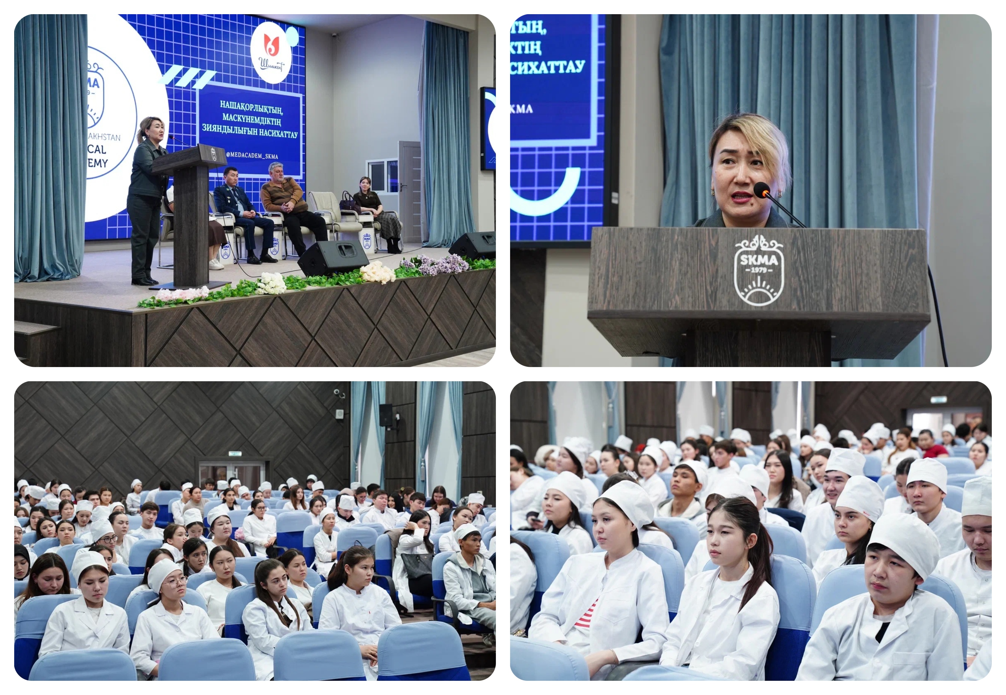 Оңтүстік Қазақстан медицина академиясында Жастар саясаты бөлімінің ұйымдастыруымен АИТВ/ЖИТС пен нашақорлықтың зияндылығын түсіндіру мақсатында кездесу өтті.