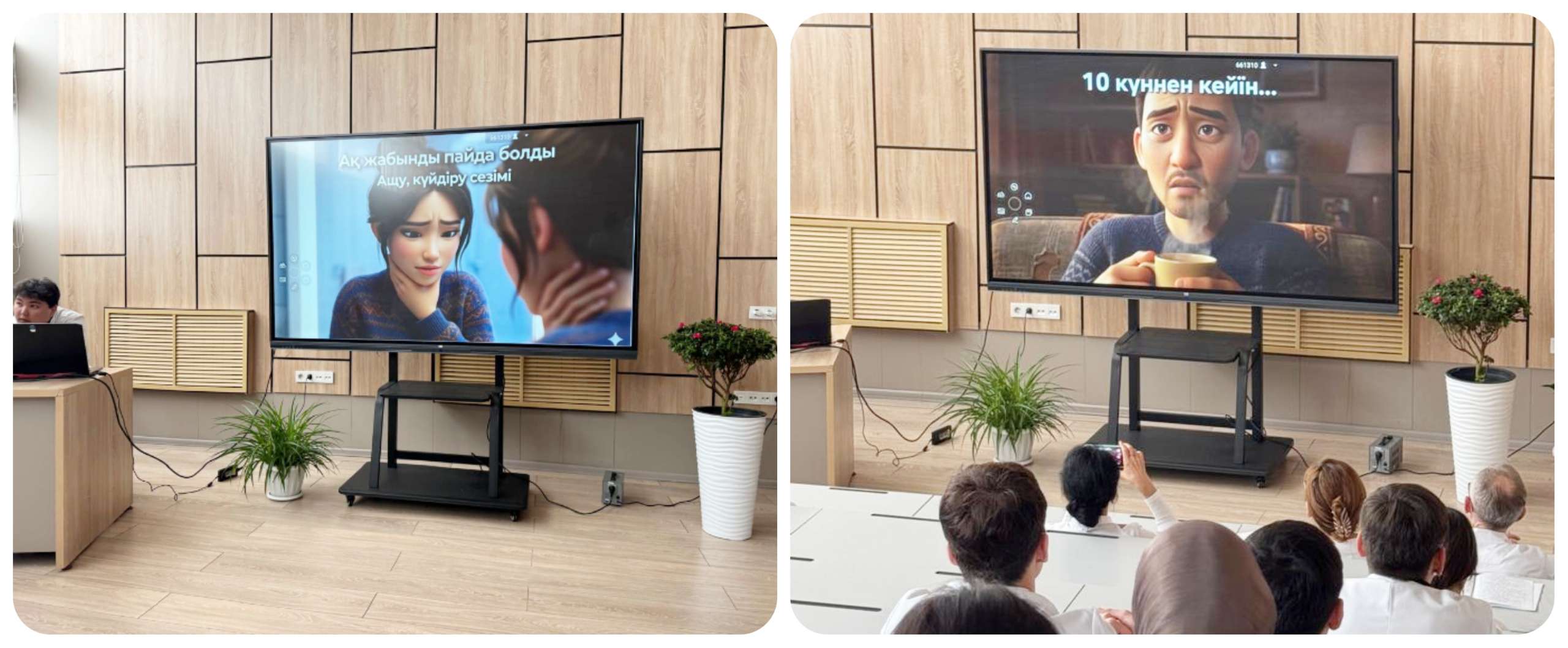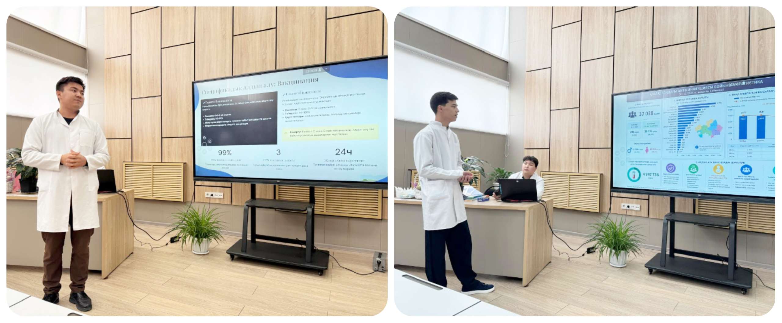 Іс-шара барысында ВМ-СТҚБ-01-23 тобының студенттері АИТВ және вирустық гепатиттер туралы Байтимов И. мен Бижанов А. презентациялық баяндамалар жасады, Арапбай Р. мен Сұлтанқазықызы М. дайындаған ақпараттық бейнероликтер көрсетілді.