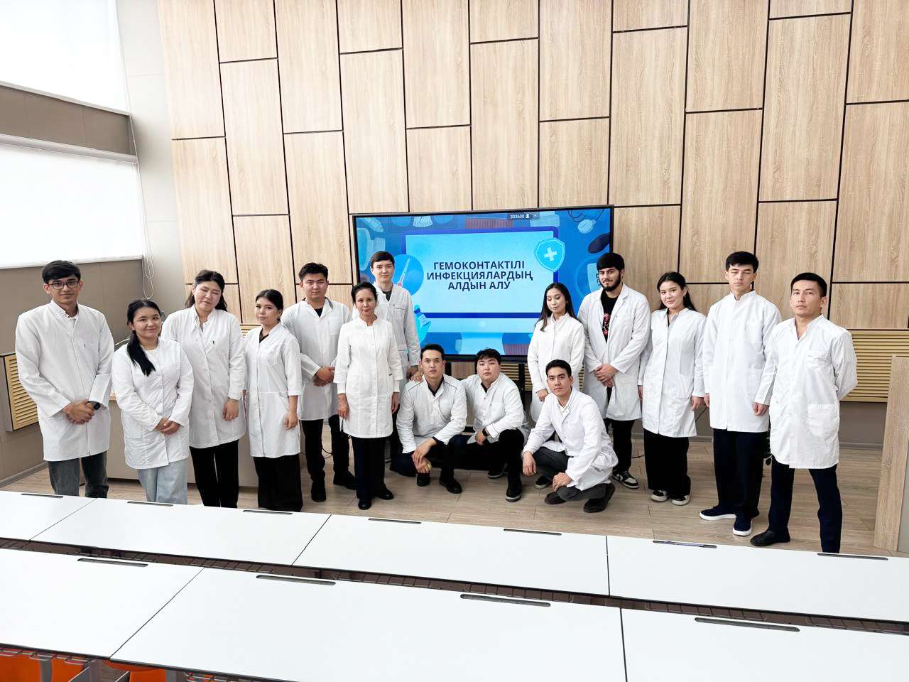 23.04.2026 жылы «Гигиена және экология кафедрасының доцент міндетін атқарушы С.У. Ескерованың ұйымдастыруымен ВМ-СТҚБ-01-23 тобымен «Гигиена және эпидемиология» пәнінен өткен циклді қорытындылап, сонымен қатар дүниежүзілік Денсаулық күніне орай стоматологиялық білім беру бағдарламасының 3-курс білім алушылары арасында «Гемоконтактілі инфекциялардың алдын алу» тақырыбында интербелсенді бағыттағы іс-шара өткізілді. Аталмыш іс-шараға кафедраның профессор-оқытушылық құрамы: Кульмирзаева Д.м., Бейсембаева З.И., Жаксыбаева Ж.Ж., Алиев Д.С. және ВМ-СТҚАБ-01-23, СТҚАБ-02-23 топтарының білім алушылары қатысты.