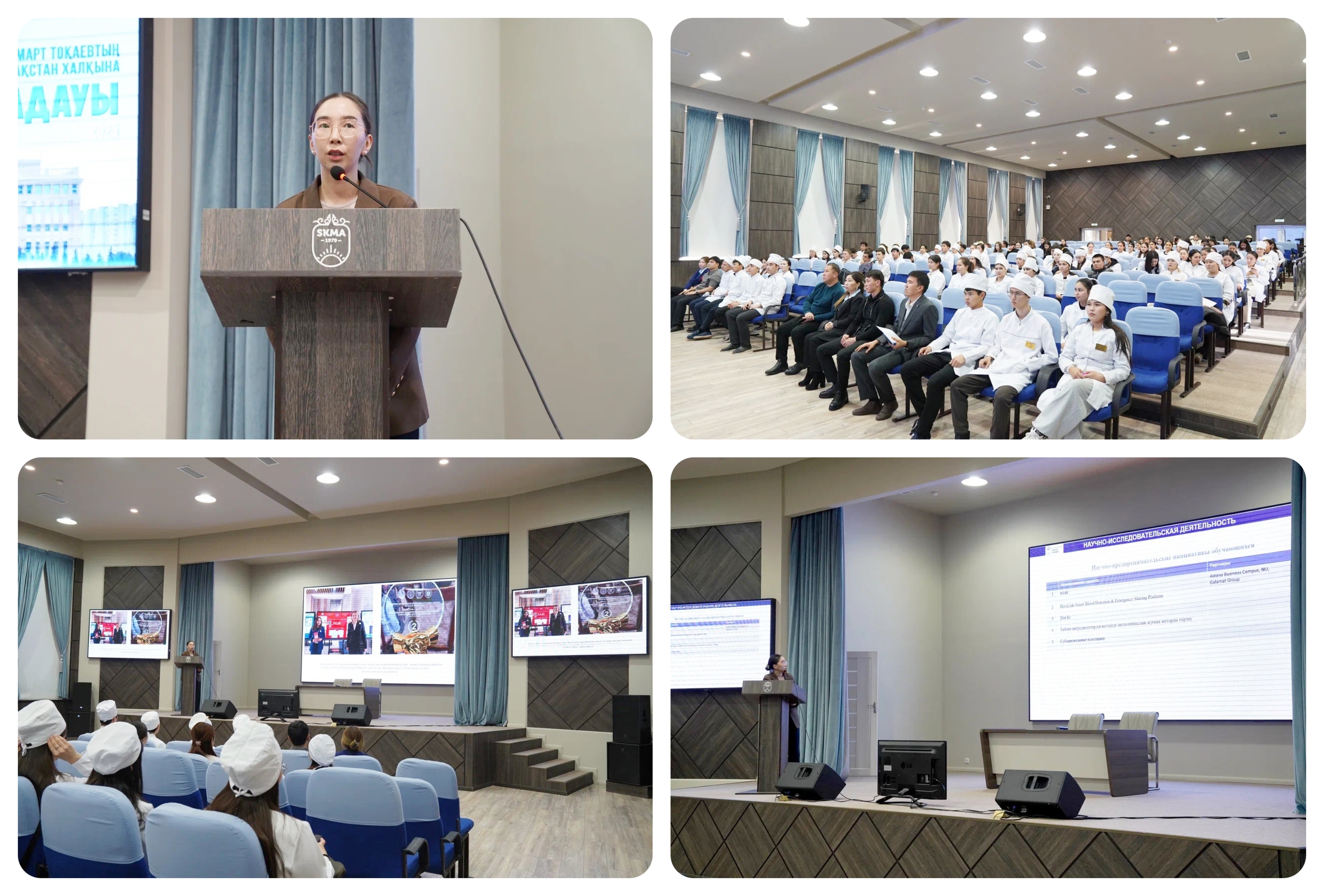 Мұнан кейін ғылыми жұмыстар бөлімінің аға менеджері Майдан Мұхамедияров сөз кезегін алып, студенттерді жаңа идеяларды іске асыруға және халықаралық деңгейде мойындалуға ұмтылуға шақырды. Сонымен қатар, Майдан Нағашыбайұлы студенттермен еліміздің ғылыми әлеуетін арттыру, жас зерттеушілерді қолдау және білім мен ғылымның интеграциясын дамыту бағытында өзара пікір алмасты.