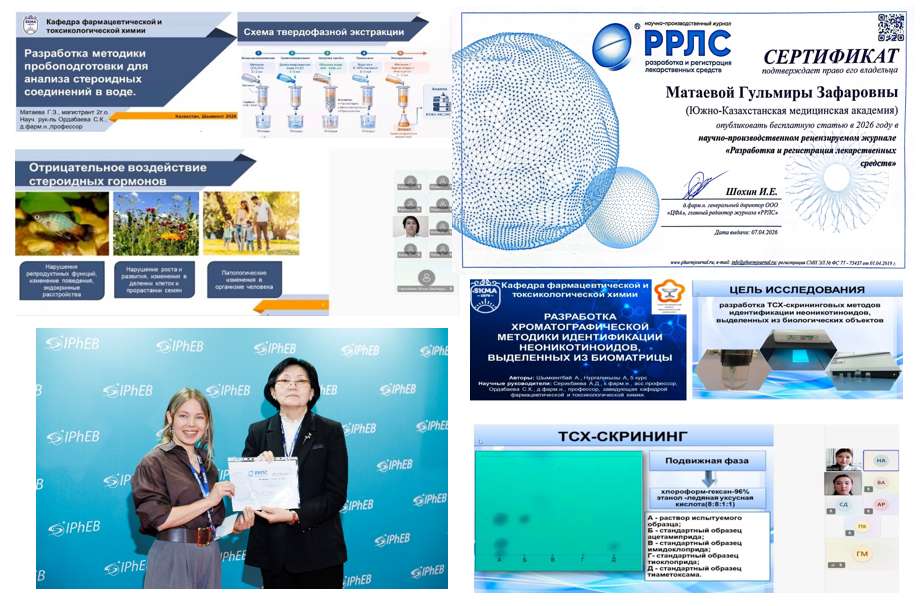 2026 жылғы 6 сәуірде СПХФУ базасында «Жас фармация – болашақ әлеуеті 2026» атты жас ғалымдар мен студенттердің конференциясы өтті. Конференцияда жас зерттеушілер дәрілік заттарды әзірлеу және технологиясы, биоаналитика, сапаны бақылау және стандарттау, фармакогнозия және фитохимия, доклиникалық зерттеулер және басқа да бағыттар бойынша ғылыми жұмыстарын ұсынды. Осы кезеңде кафедраның студенттік ғылыми үйірмесінің мүшелері Шымкентбай А. және Нұрғалиқызы А. «Биологиялық сұйықтықтардан бөлінген неоникотиноидты пестицидтер үшін ЖҚХ-скрининг әдістемесін әзірлеу» тақырыбындағы баяндамамен онлайн форматта қатысты.
