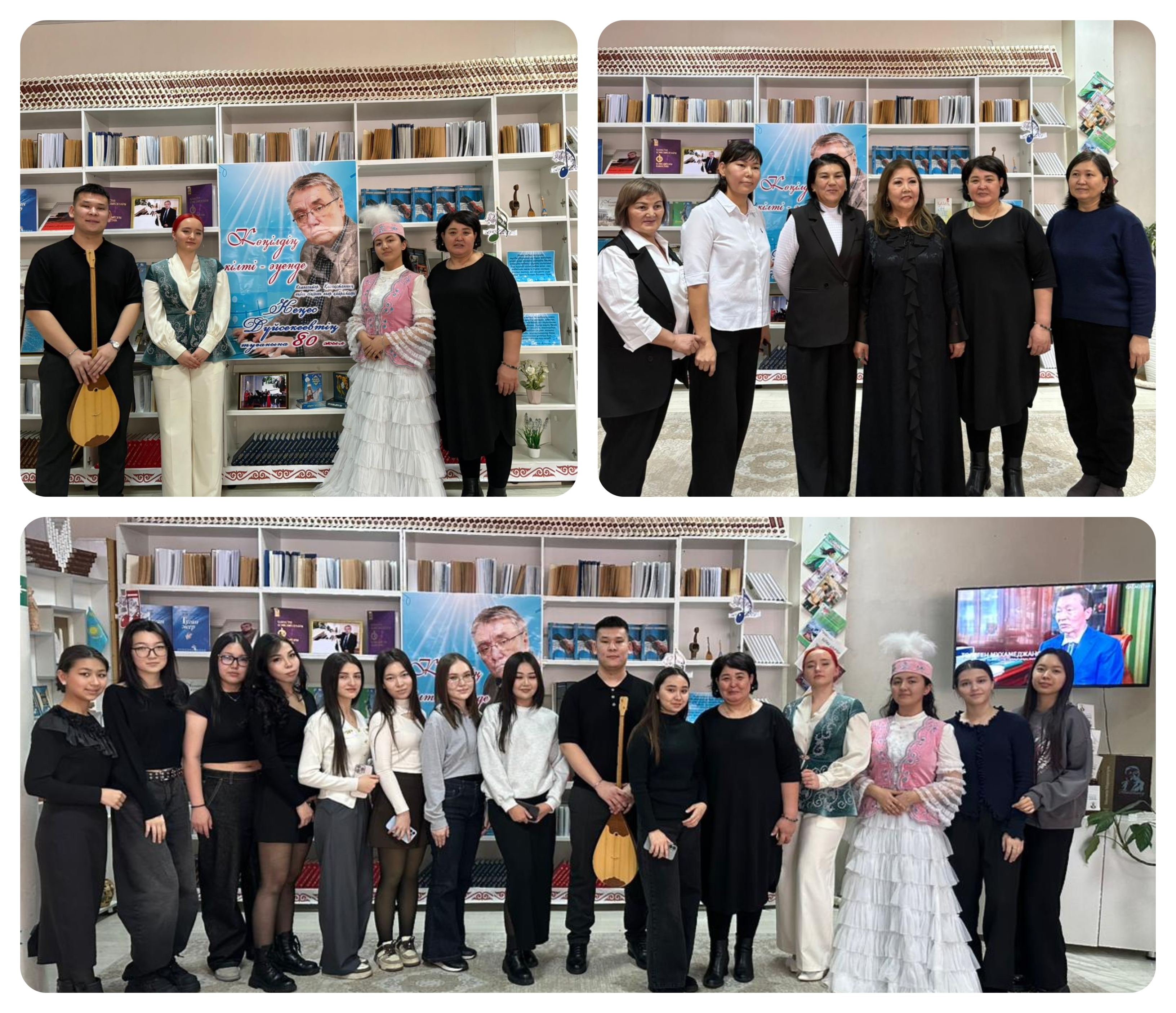 Бүгін Оңтүстік Қазақстан медицина академиясының қазақ, орыс және латын тілдері кафедрасы Шымкент қалалық жастар кітапханасымен бірлесе отырып, көрнекті композитор, Қазақстанның еңбек сіңірген қайраткері Кеңес Дүйсекеевтің туғанына 80 жыл толуына арналған «Көңілдің кілті – әуенде» атты еске алу кешін ұйымдастырды. Тағылымды шараның басты мақсаты – сазгердің мол мұрасын насихаттау, оның қазақ музыка өнеріне қосқан зор үлесін жас ұрпаққа таныстыру және рухани құндылықтарды дәріптеу болды. Кеш барысында композитордың шығармашылық жолы, ұлттық музыка өнеріндегі қолтаңбасы мен ел жүрегінен орын алған әндері жайлы мазмұнды деректер айтылды. Кеш қонақтары қатарында Қазақстанға еңбегі сіңген мәдениет қайраткері, Шымкент қалалық филармониясының әншісі Айжан Тәженова, Саз колледжінің кітапханашысы Жұматаева Ақмарал және академия білім алушылары болды. Әсіресе, Айжан Рахымғалиқызының орындауындағы сазгердің жүрекке жылы, сырлы әндері кеш көркін қыздырып, көрермендерге ерекше әсер сыйлады. Ән мен әуенге толы әсерлі сәттер қатысушыларды рухани тереңдікке жетелеп, композитор шығармашылығына деген құрметті арттыра түсті.