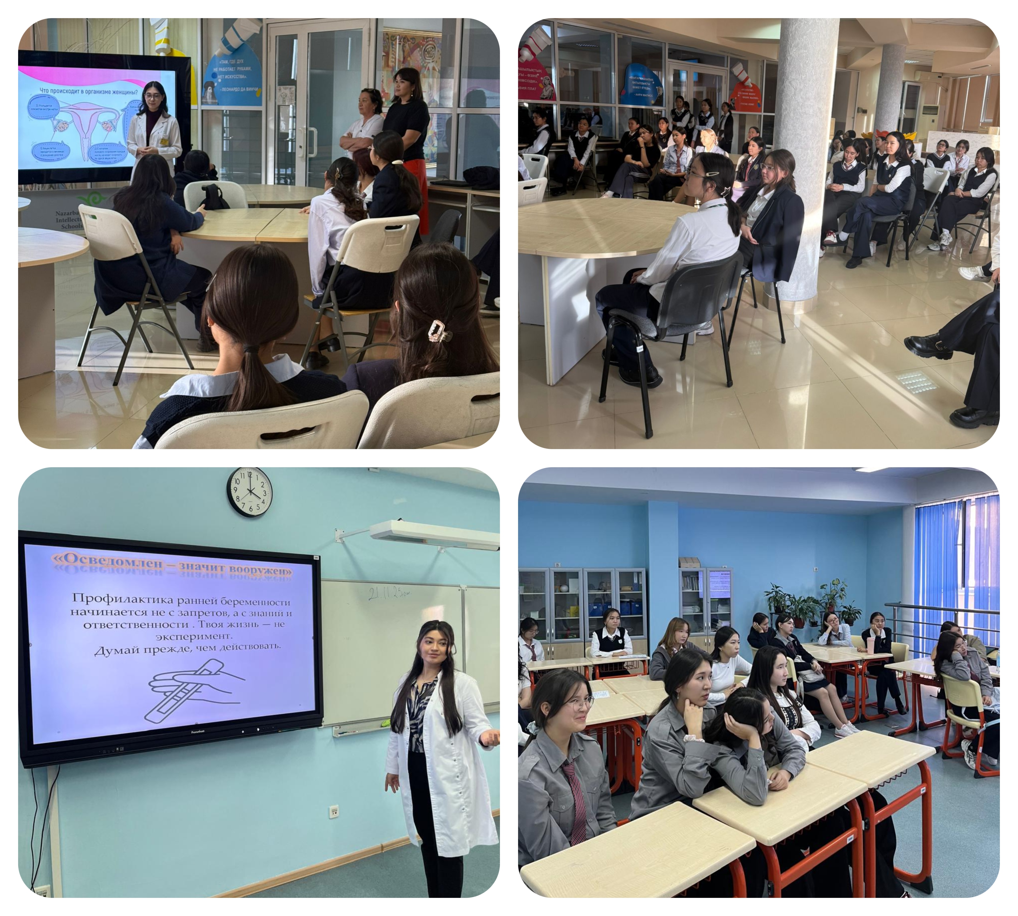 2025 жылдың 13-қараша күні ОҚМА АҚ «Ішкі аурулар пропедевтикасы» кафедрасының ассистенті Б.М.Байдуллаевтың жетекшілігімен жаратылыстану-математика бағытындағы Назарбаев Зияткерлік мектебінің 8-9 сынып ер балаларына 5 курс білім алушылары: Нуртуллаев Б., Дадамуратов С., қыз балаларына Абдурасилова Я., Мустафаева Г. «Жыныстық даму және гигиена» тақырыбында дәріс оқыды. Сонымен қатар, Б.М.Байдуллаевтың жетекшілігімен 2025 жылдың 21-қараша күні Иргашева С., Мадикаримова Д. 10-11 сынып қыздарына «Ерте жүктіліктің алдын алу» , ер балаларға Мирахматов С., Исмаилов Ш. «Жыныстық қатынас арқылы берілетін аурулар» тақырыбында дәрістер оқыды. Дәріс барысында оқушылар тарапынан қойылған сұрақтарға жауап берілді.