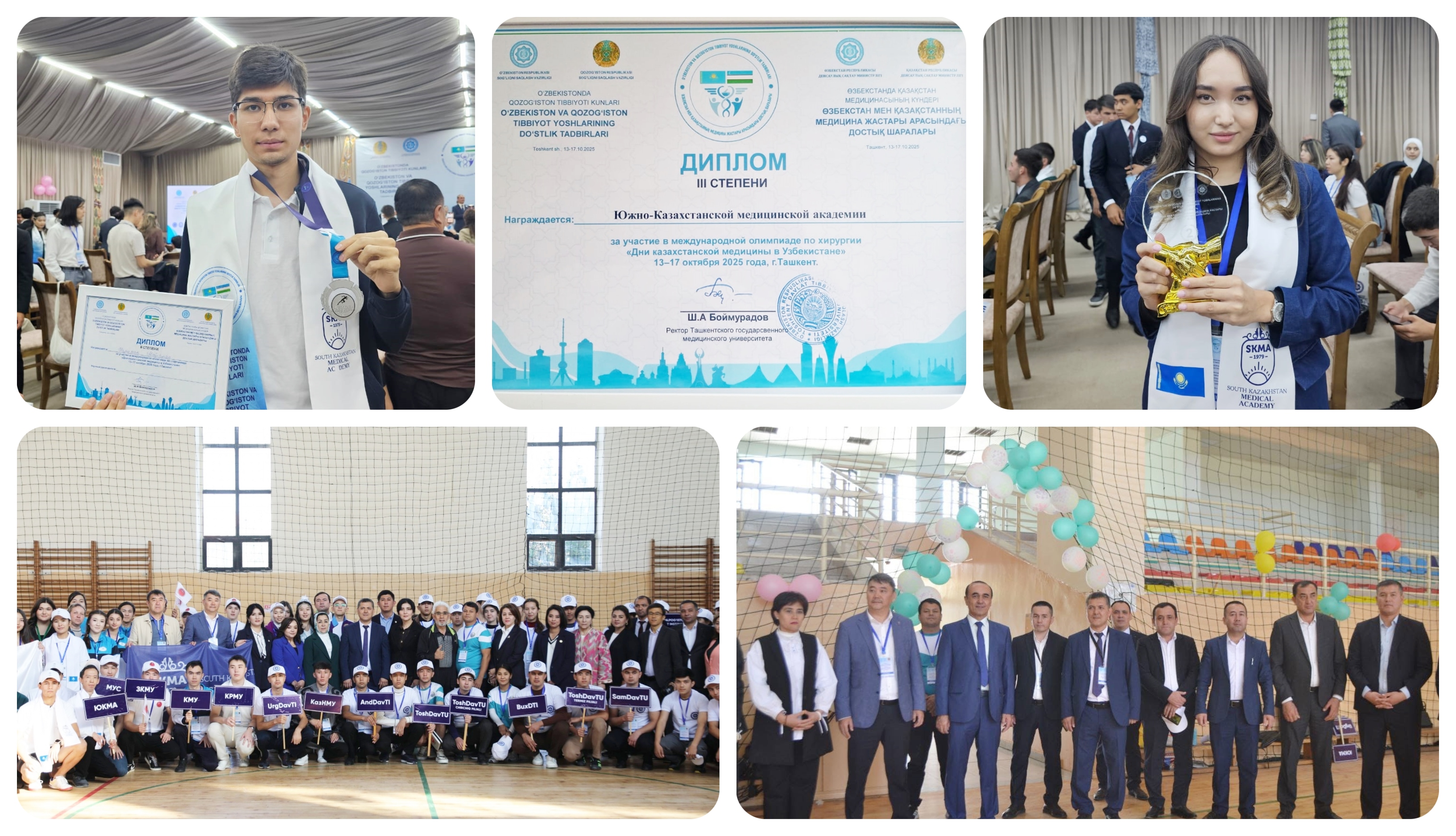 Ағымдағы жылдың 15–17 қазан аралығында Ташкент мемлекеттік медицина университетінде Қазақстан мен Өзбекстанның медициналық бағыттағы жоғары оқу орындарының студенттері арасында Достық олимпиадасы мен спартакиадасы өтті. Бұл іс-шара Өзбекстандағы Қазақстан медицинасы күндері аясында ұйымдастырылып, екі елдің медицина мамандарын дайындайтын оқу орындарының студенттерін бір алаңға жинады.