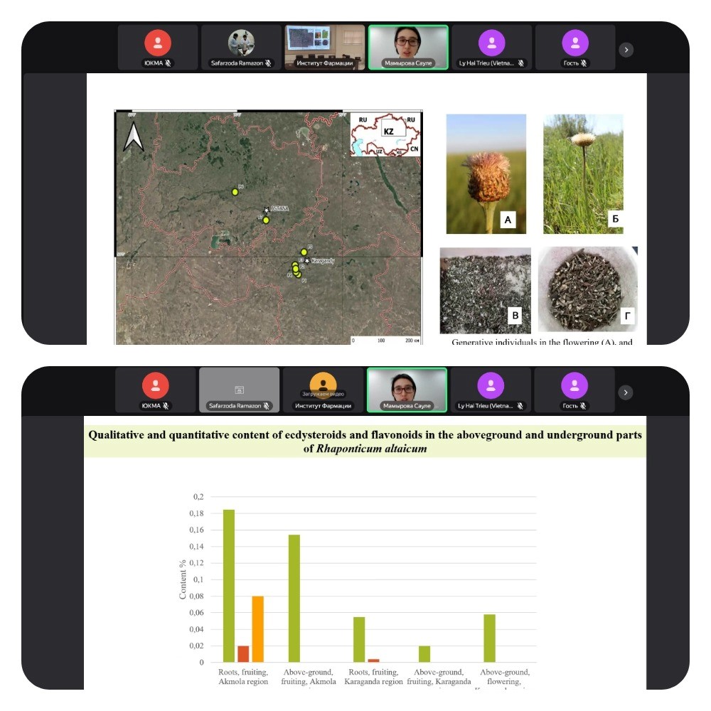 ˗ Мамырова С. А. «Rhaponticum altaicum перспективалы дәрілік түр ретінде» ауызша баяндамасын ұсынды;