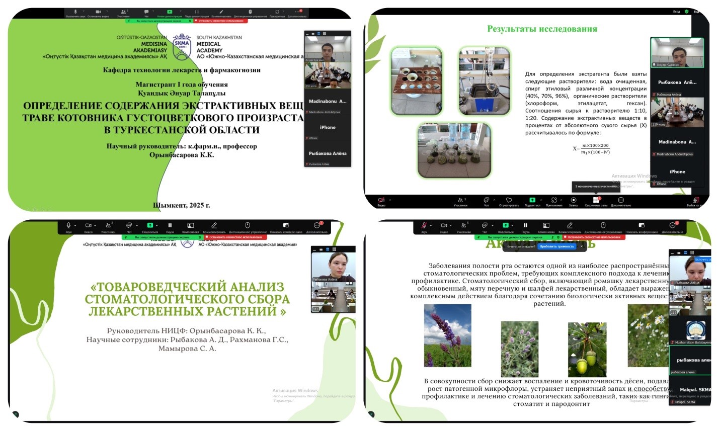 ˗ Рахманова Г. С. «Стоматологиялық жинаққа кіретін дәрілік өсімдіктердің фармакогностикалық зерттеу» жұмысының баяндамасын ұсынды.