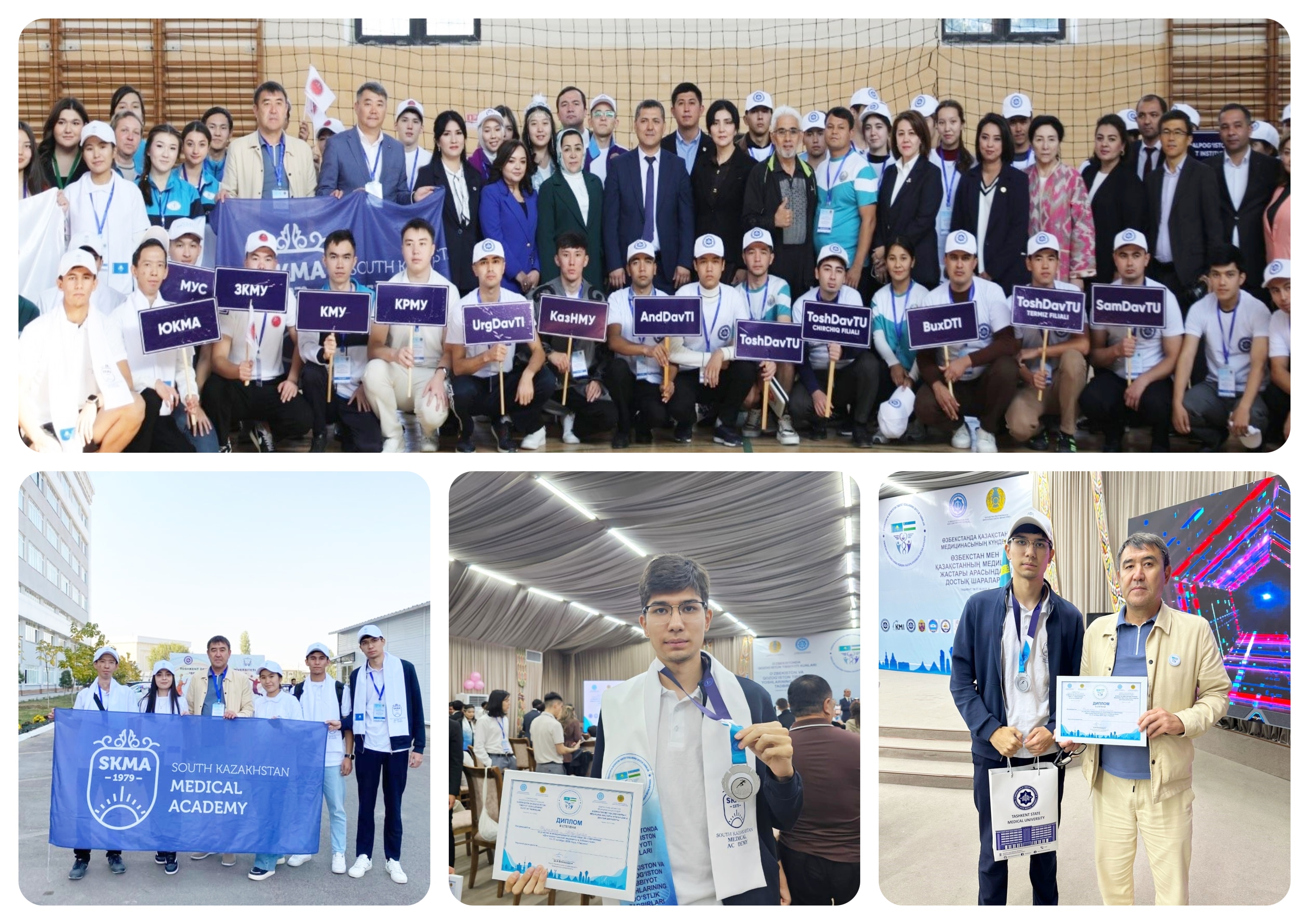 Өзбекстандағы Қазақстан медицинасының күндері: 15-17 қазан аралығында Қазақстан мен Өзбекстан медицина жастарының достық шараларыӨзбекстандағы Қазақстан медицинасының күндері аясында Қазақстан мен Өзбекстанның медицина жастарының достық шаралары өтті. Іс-шаралар екі елдің медициналық жоғары оқу орындары арасындағы академиялық серіктестікті дамыту мен өзара ынтымақтастықты нығайтуға бағытталды.