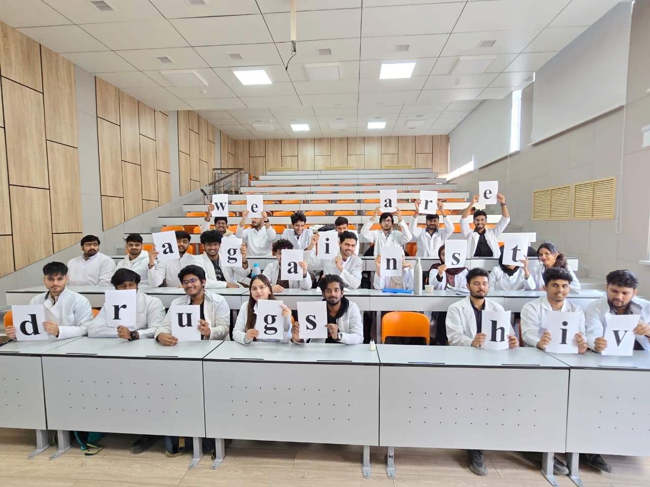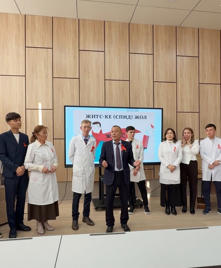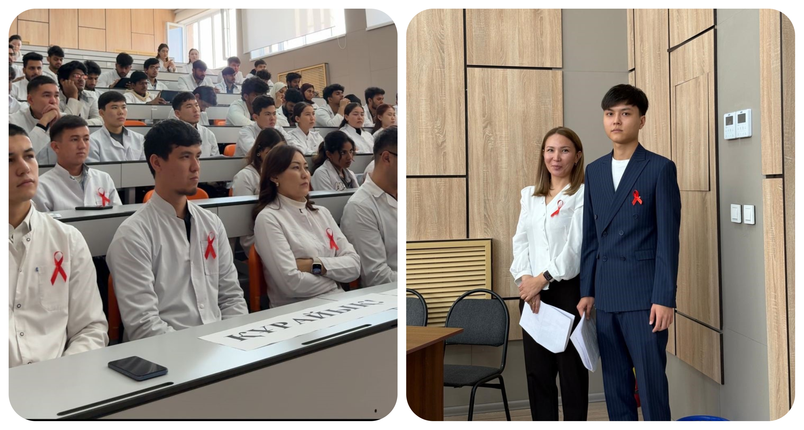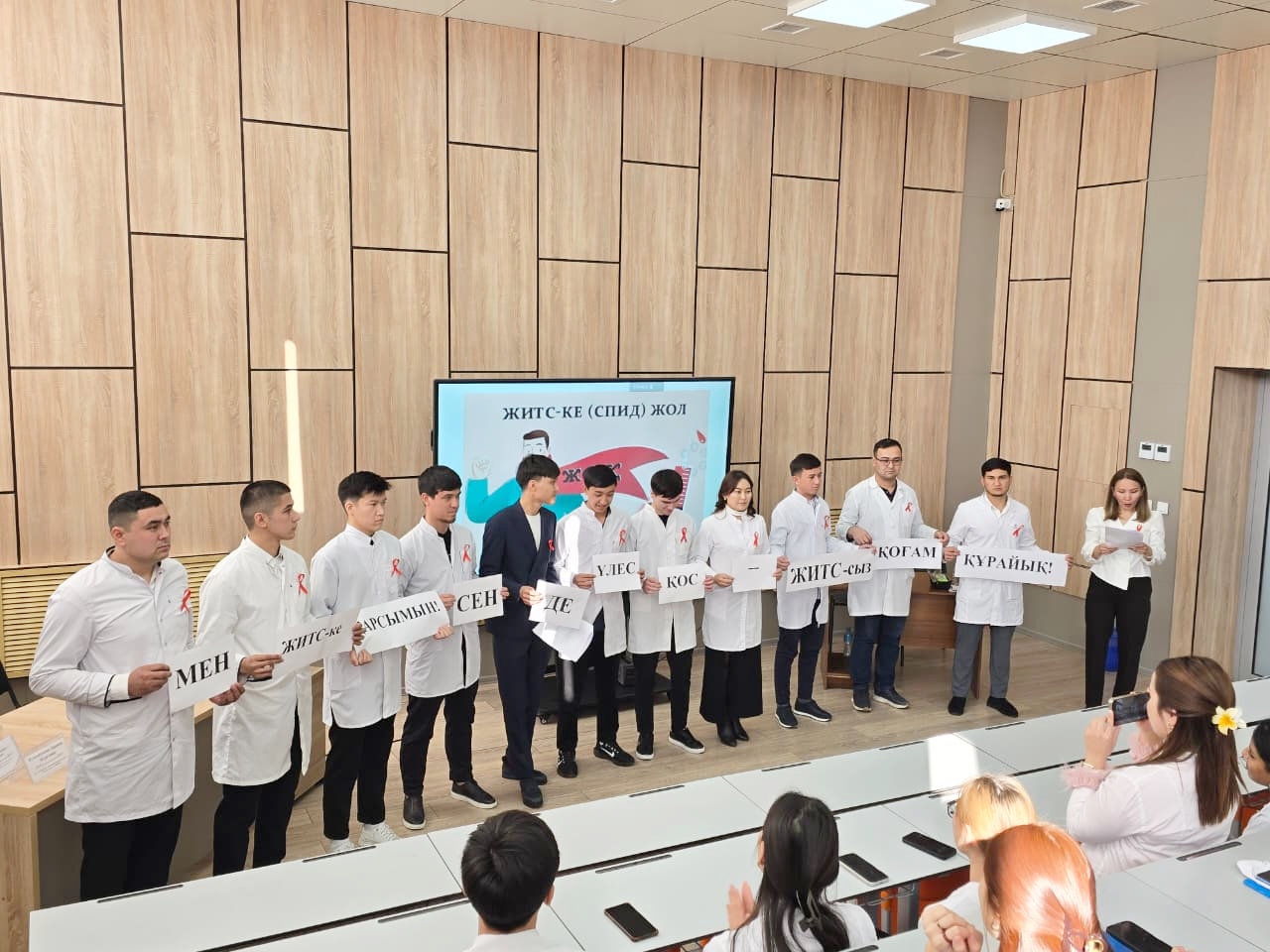 28.11. 2025 жылы Гигиена және эпидемиология кафедрасында ВМ-МҚқА,Б -01-24, ВМ- МПІ А,Б 01-25 және ВМ- МПІО-01-25, ВМ- МШАБ-05-23 топтарының білім алушыларымен бірге 1-желтоқсан – Дүниежүзілік ЖИТС-ке қарсы күрес күніне арналған ақпараттық-тәрбиелік шара өткізілді.