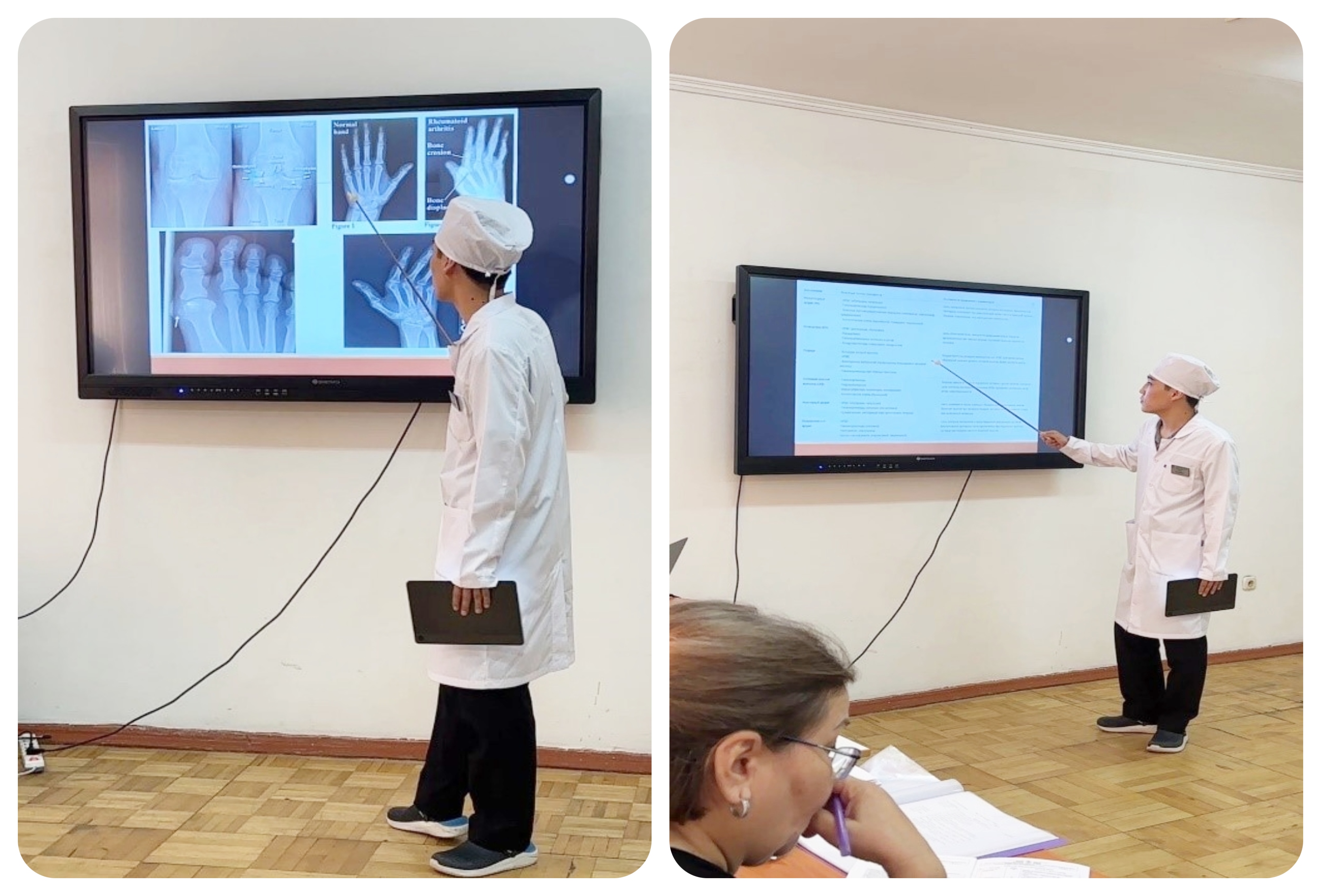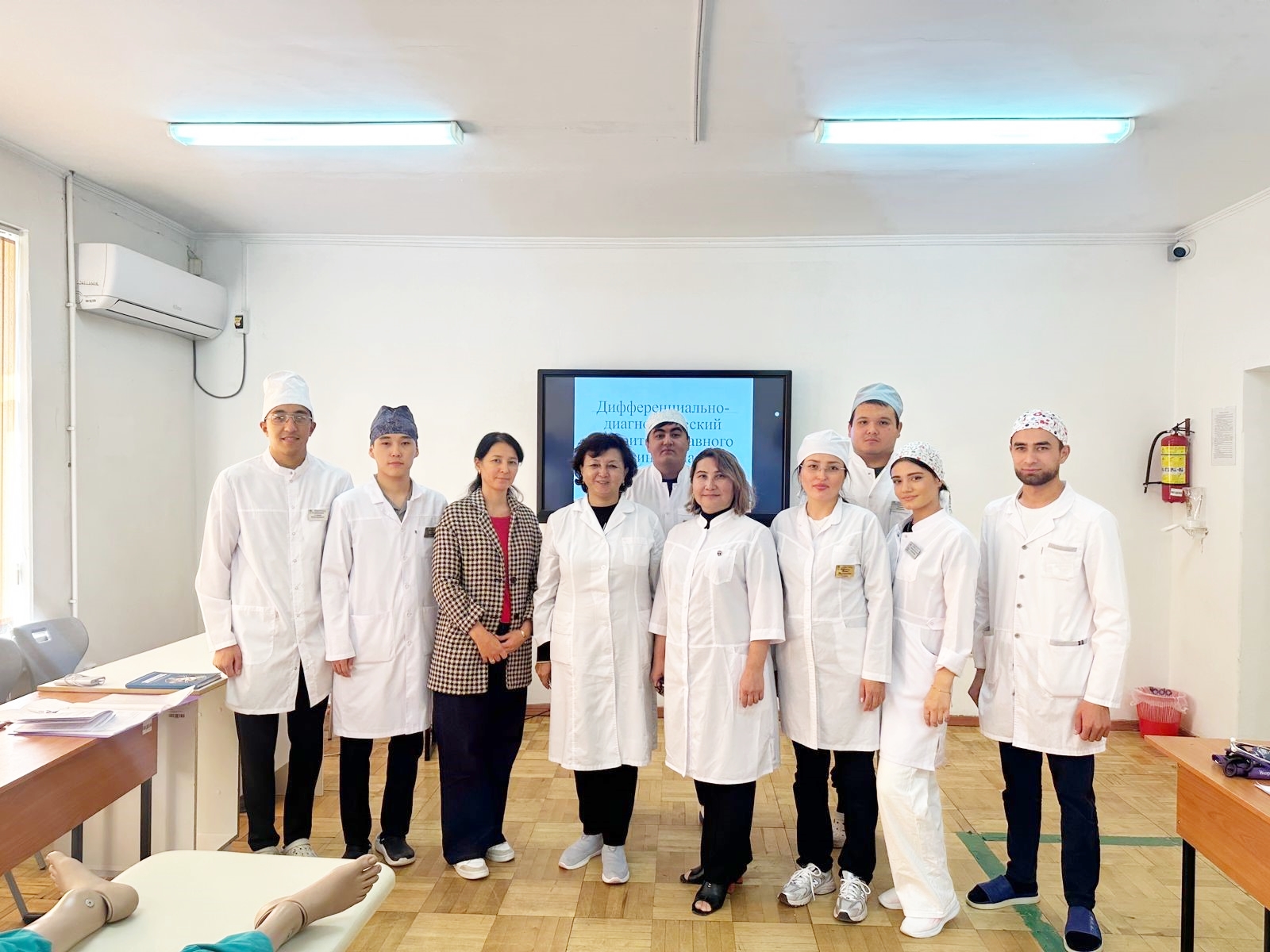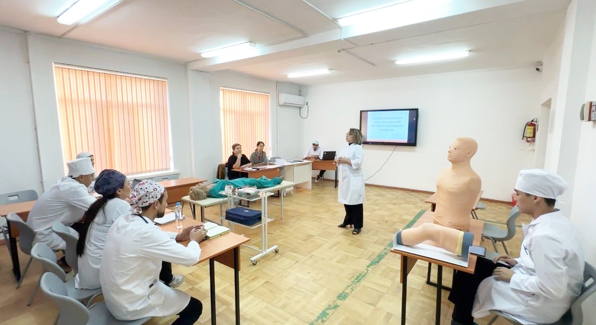 Ашық сабақ интерактивті әдісті қолдана отырып жүргізілді "Стандартталған пациент" әдісі "кездейсоқ конверт" және "миға шабуыл"элементтерін қолдану. Бұл формат интерндердің қатысуын жандандыруға, клиникалық ойлау мен командалық өзара әрекеттесу дағдыларын дамытуға мүмкіндік берді.