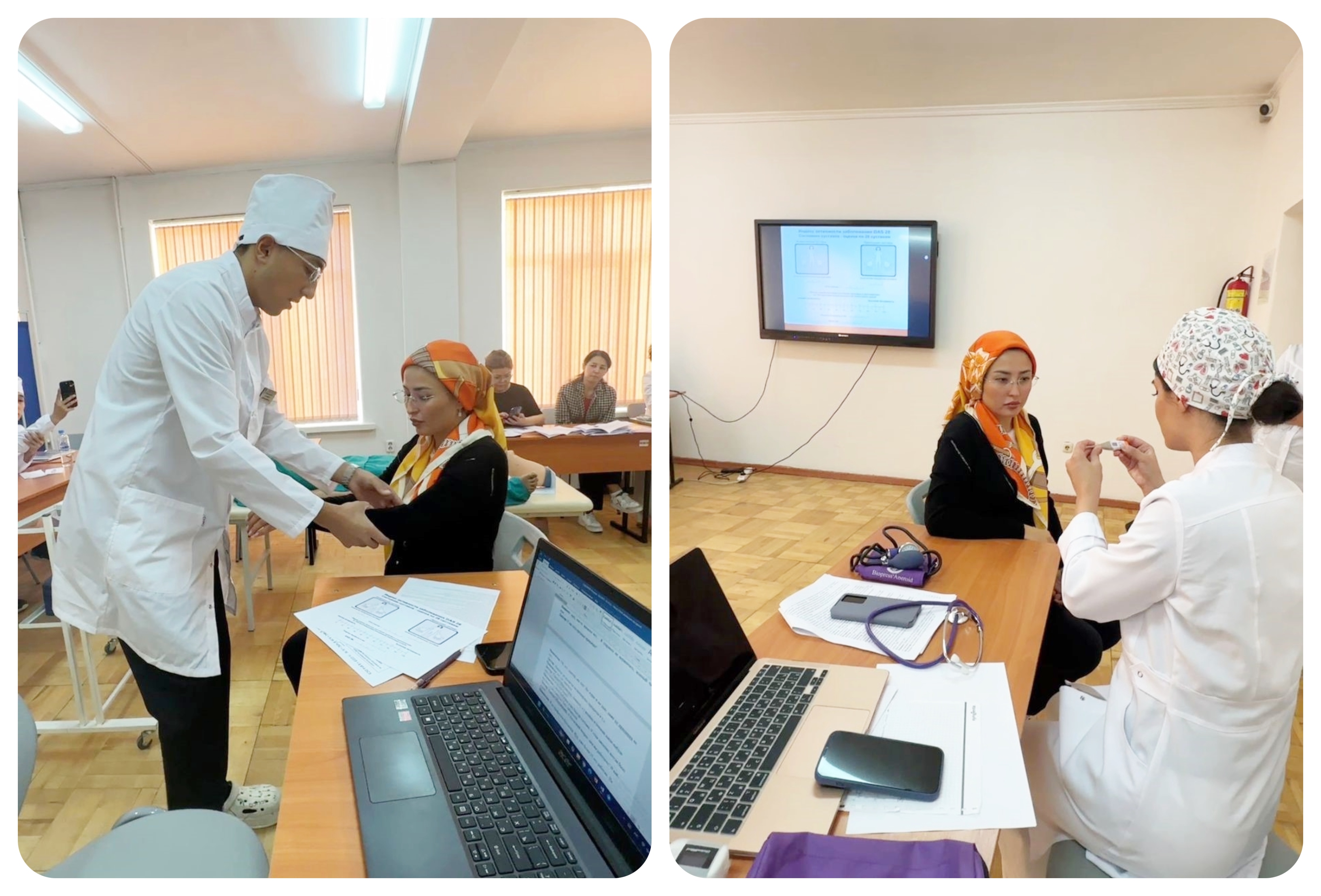 Клиникалық жағдайды жүргізу барысында интерндер өздерінің теориялық білімдерін нақты клиникалық практикаға барынша жақын жағдайларда қолдану қабілетін көрсетті. Физикалық емтихан тарихы мен клиникалық ойлаудың практикалық дағдыларын қолдана отырып, интерндер буын синдромы бар науқасты қабылдау алгоритмін дәйекті түрде көрсетті.