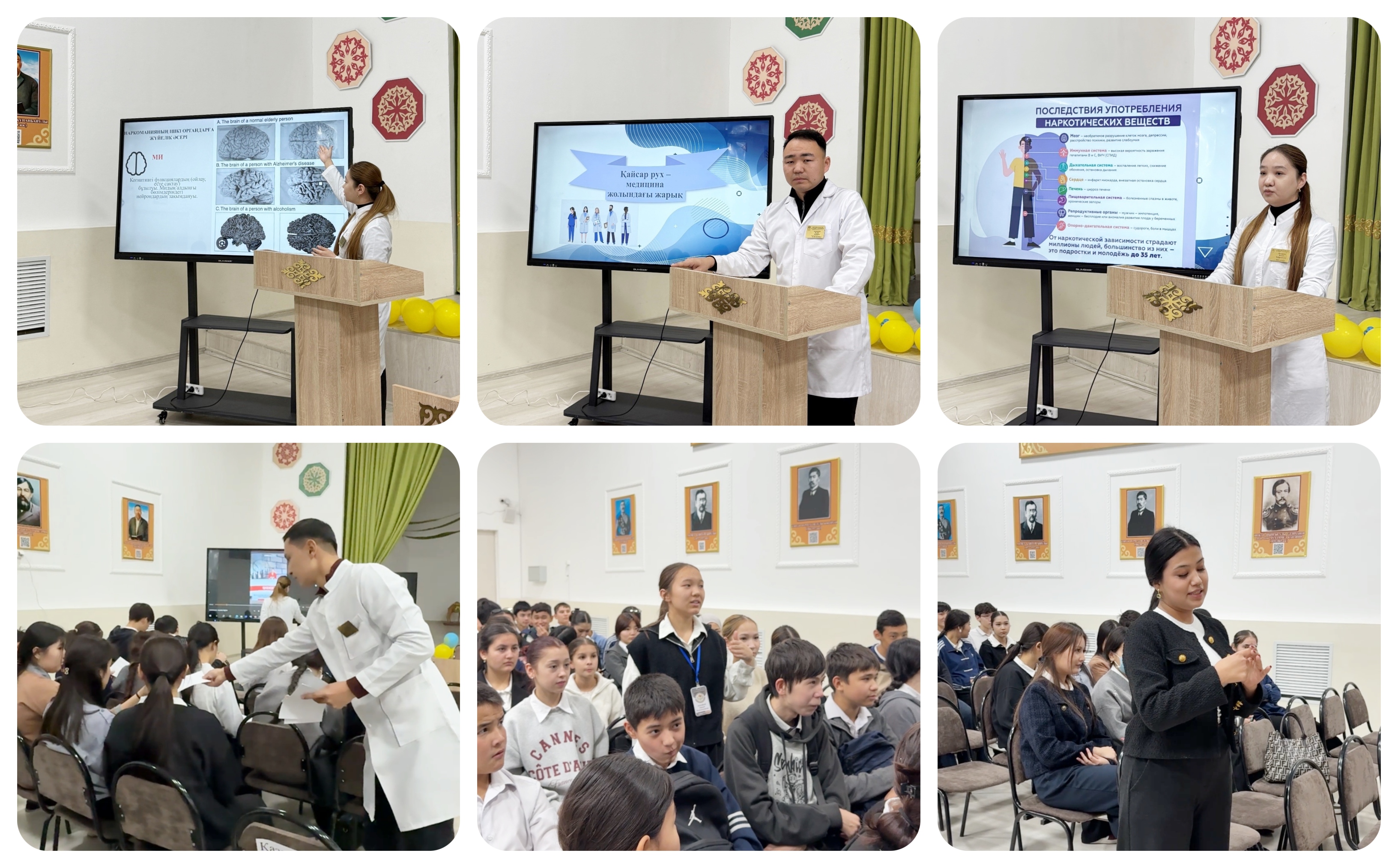 2025 жылғы 4 желтоқсанда «Отбасылық медицина» кафедрасының ассистенті Нарзуллаева Динара Сабыржановнаның жетекшілігімен ІЖТДҚ 16-24 тобының дәрігер-интерндері «Қайсар рух – медицина жолындағы жарық» тақырыбында танымдық әрі тәрбиелік маңызы зор дәріс ұйымдастырылды.