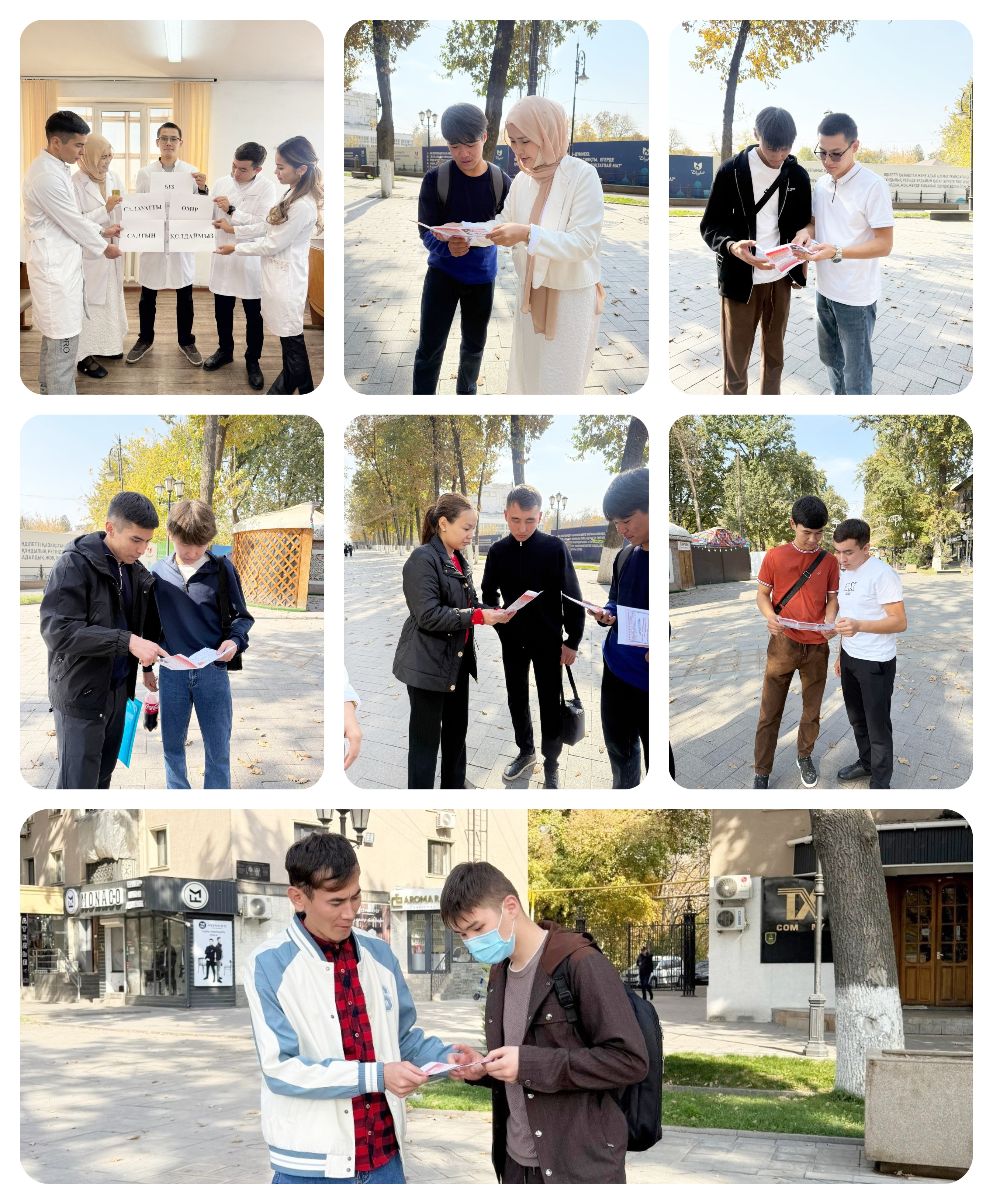 «Отбасылық медицина» кафедрасының ассистенті Нарзуллаева Динара Сабыржановна жетекшілігімен ІЖТДҚ- 19-24 топ дәрігер-интерндерімен бірлесе студенттер арасында нашақорлық, маскүнемдік және шылым шегудің алдын алу бойынша «Салауатты өмір -нұрлы болашақ» тақырыбында тәрбиелік жұмыс жүргізілді. Іс-шараның негізгі мақсаты: Нашақорлықтың зиянды әсерлерін түсіндіру, жастар арасында нашақорлыққа қарсы күрес жүргізу. Сондай-ақ, салауатты өмір салтын насихаттау – жастардың денсаулығын сақтау мен нығайтуға, болашаққа нұрлы көзқараспен қарауға мүмкіндік береді.