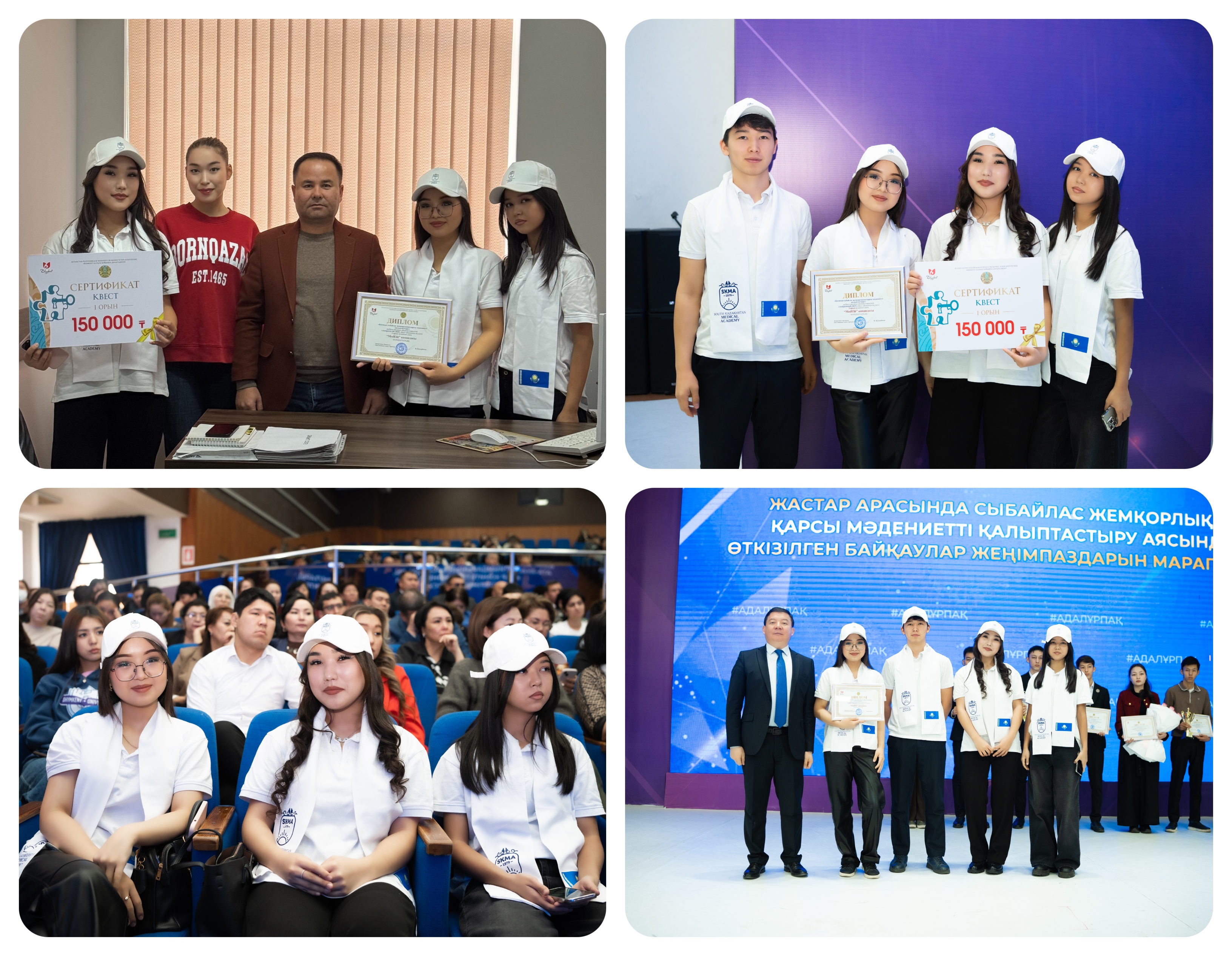 Шымкент қаласында «Қоғамда сыбайлас жемқорлыққа қарсы мәдениетті қалыптастыру» жобасы аясында өткен «Antiparacraft-2025» квест ойынында Оңтүстік Қазақстан медицина академиясы жанындағы «Академия жастар орталығына» қарасты «Жастар рухы» ЖҚ ұйымының белсенді студенттері жоғары дайындық пен бірліктің үлгісін танытып, жүлделі І орынға лайық болып көш бастады.