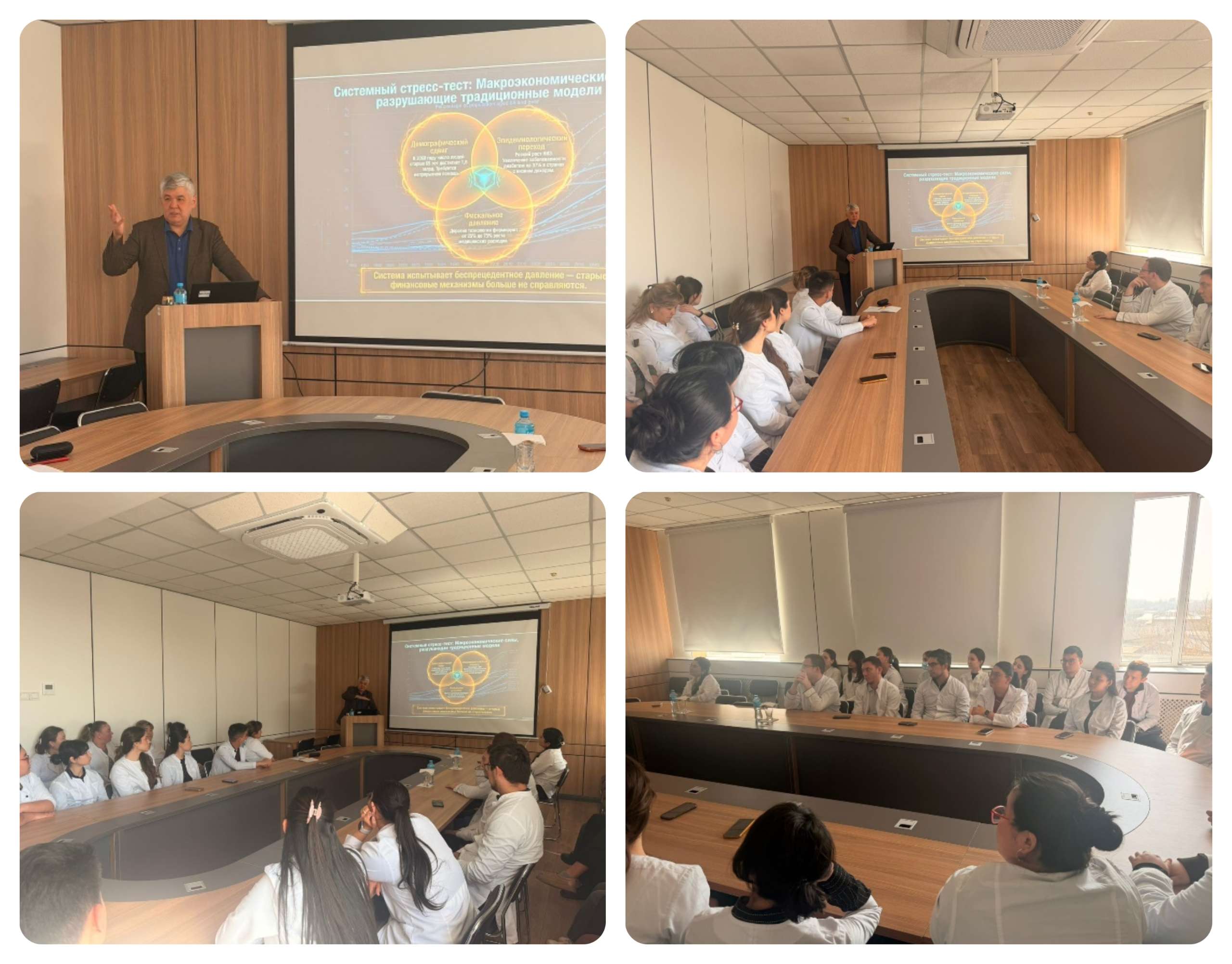 2026 жылғы 18 наурызда «Қоғамдық денсаулық және денсаулық сақтау» кафедрасында денсаулық сақтау жүйесін тұрақты құрудың стратегиялық мәселелеріне арналған сараптамалық дәріс-семинар өтті. Негізгі баяндамашы ретінде медицина ғылымдарының докторы, медициналық цифрландыру саласының танымал сарапшысы және «KMG Group» стратегиялық кеңесшісі Елжан Амантаевич Биртанов сөз сөйледі. Назардың орталығында Денсаулық сақтау қызметтерімен жалпы қамту (ДСҚЖҚ /UHC) тұжырымдамасы болды, ол әлеуметтік жүктеме емес, елдің экономикасы мен ұлттық қауіпсіздігіне сыни инвестиция ретінде айқындалды. Баяндама барысында Қазақстанның соңғы онжылдықтағы прогресс нәтижелері ұсынылды. Есеп деректері бойынша, 2015-2026 жылдар аралығында елдегі ДСҚЖҚ индексі 68-ден 77 баллға дейін өсті, ал халықтың «қалтадан» төлейтін шығындар үлесі 44%-дан 26%-ға дейін азайды. Дегенмен, спикер атап өткендей, 2030 жылға қарай БҰҰ-ның мақсатты көрсеткіштеріне (индекс >80, шығындар <20%) жету үшін жүйе халықтың қартаюы, созылмалы аурулардың өсуі және еңбекақы қоры салығына тәуелділік сияқты бірқатар құрылымдық сын-қатерлерді шешуі қажет. Семинар қорытындысы бойынша саланы әрі қарай дамытудың төрт стратегиялық басымдығы тұжырымдалды: жалпы салықтар мен акциздер арқылы кіріс базасын әртараптандыру, емдеуден алдын алуға парадигманы ауыстыру, медициналық технологиялар бағалауды құндылық сүзгісі ретінде енгізу, сондай-ақ цифрлық жүйелер мен болжамды аналитиканы дамыту. Сарапшы Қазақстанның жаһандық сын-қатерлерді ұлттық артықшылыққа айналдыруға барлық ресурстары бар екенін, көлемге төлеудің ескірген моделінен құндылыққа негізделген денсаулық сақтауға өту мүмкіндігі бар екенін атап өтті.