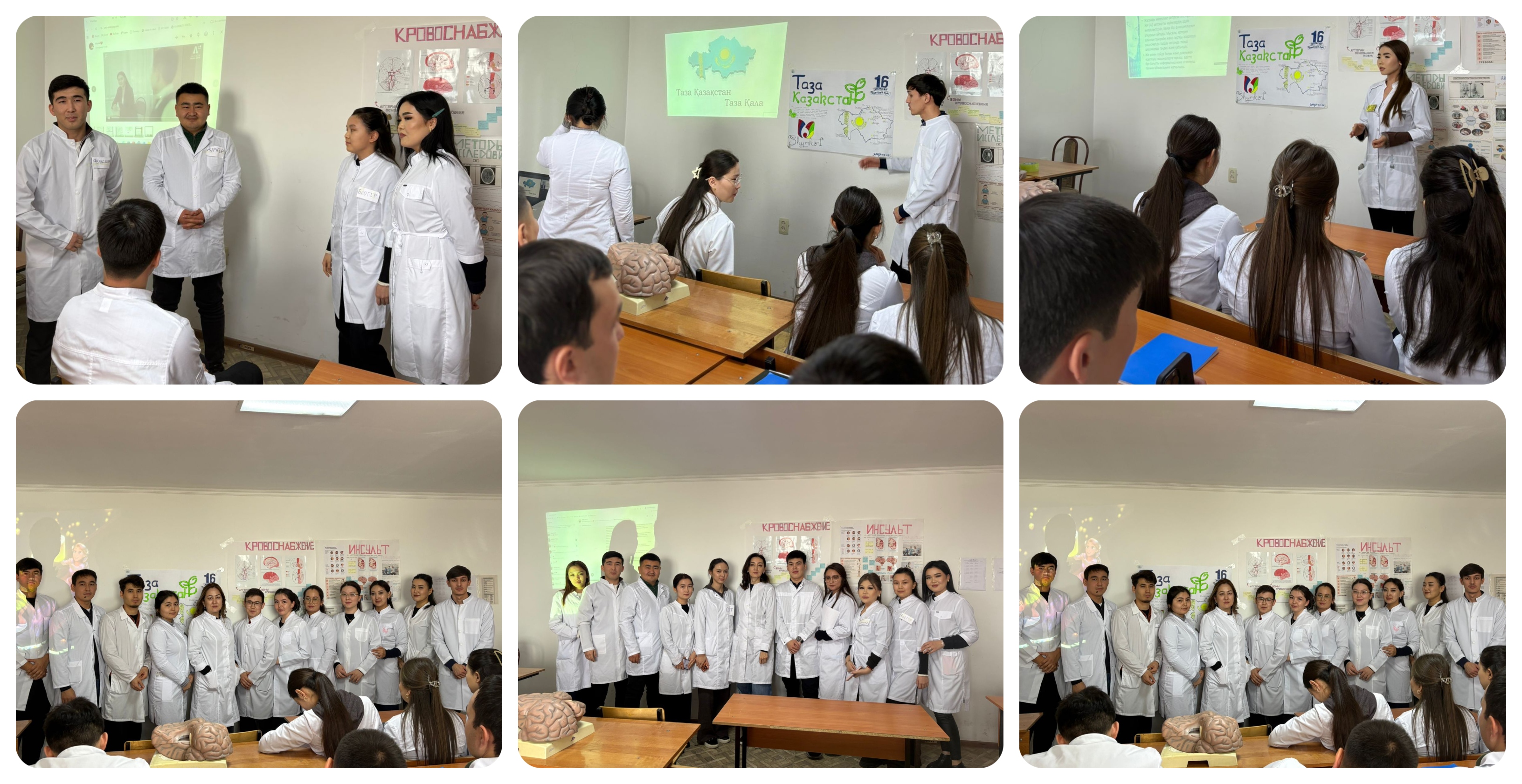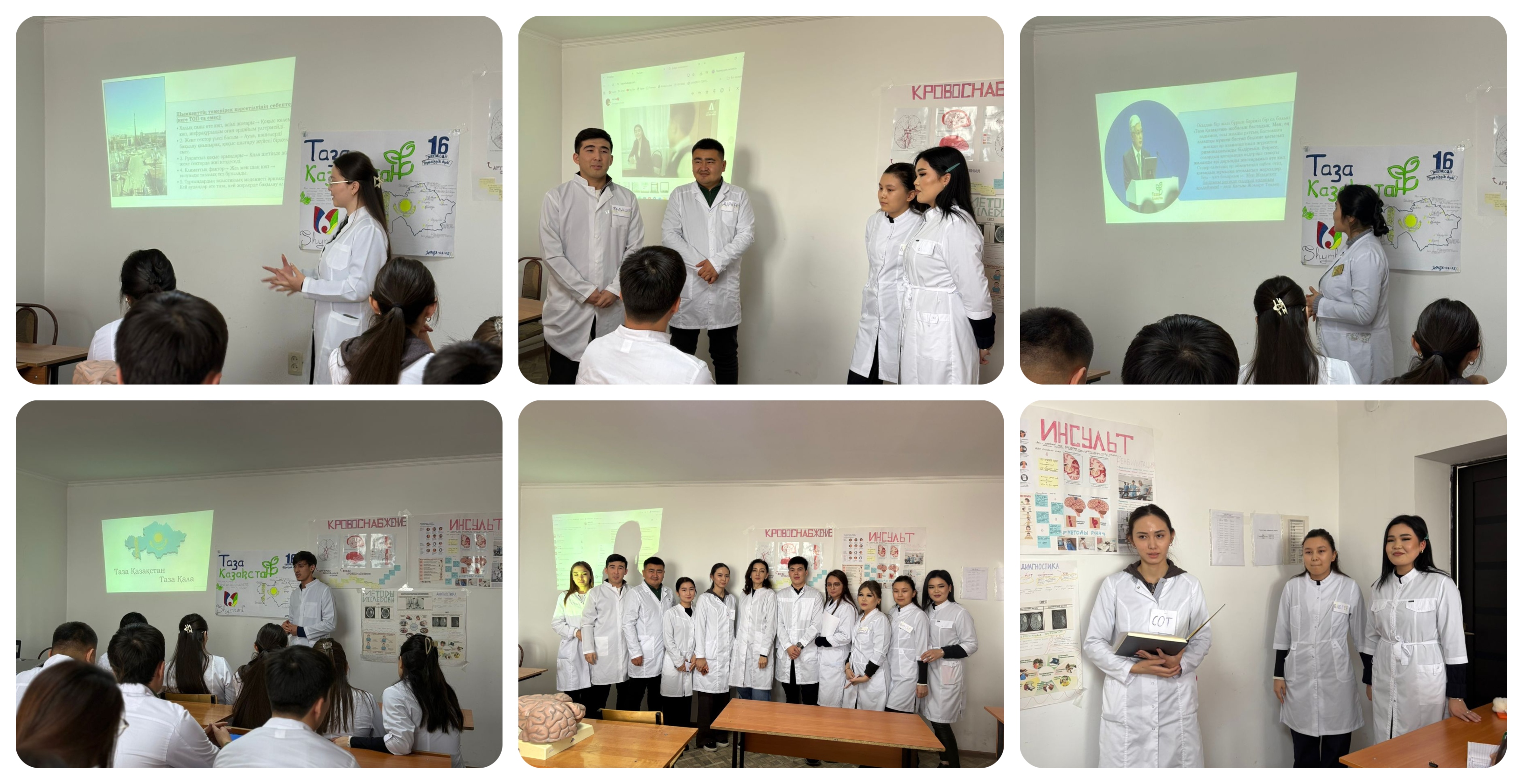 Сабақ барысында болашақ дәрігерлер қазіргі Қазақстан қоғамының даму бағытына қатысты маңызды мәселелерді талқылады. Атап айтқанда, жасанды интеллект пен цифрлық өзгерістердің қоғам өміріндегі орны, құқықтық мәдениет пен заңға құрмет, сондай-ақ «Таза Қазақстан – Таза қала» тұжырымдамасы аясындағы экологиялық сана тақырыптары кеңінен қамтылды. Студенттер бұл мәселелерді презентациялар, көрнекі материалдар және ситуациялық кейстер арқылы ашып көрсетті.