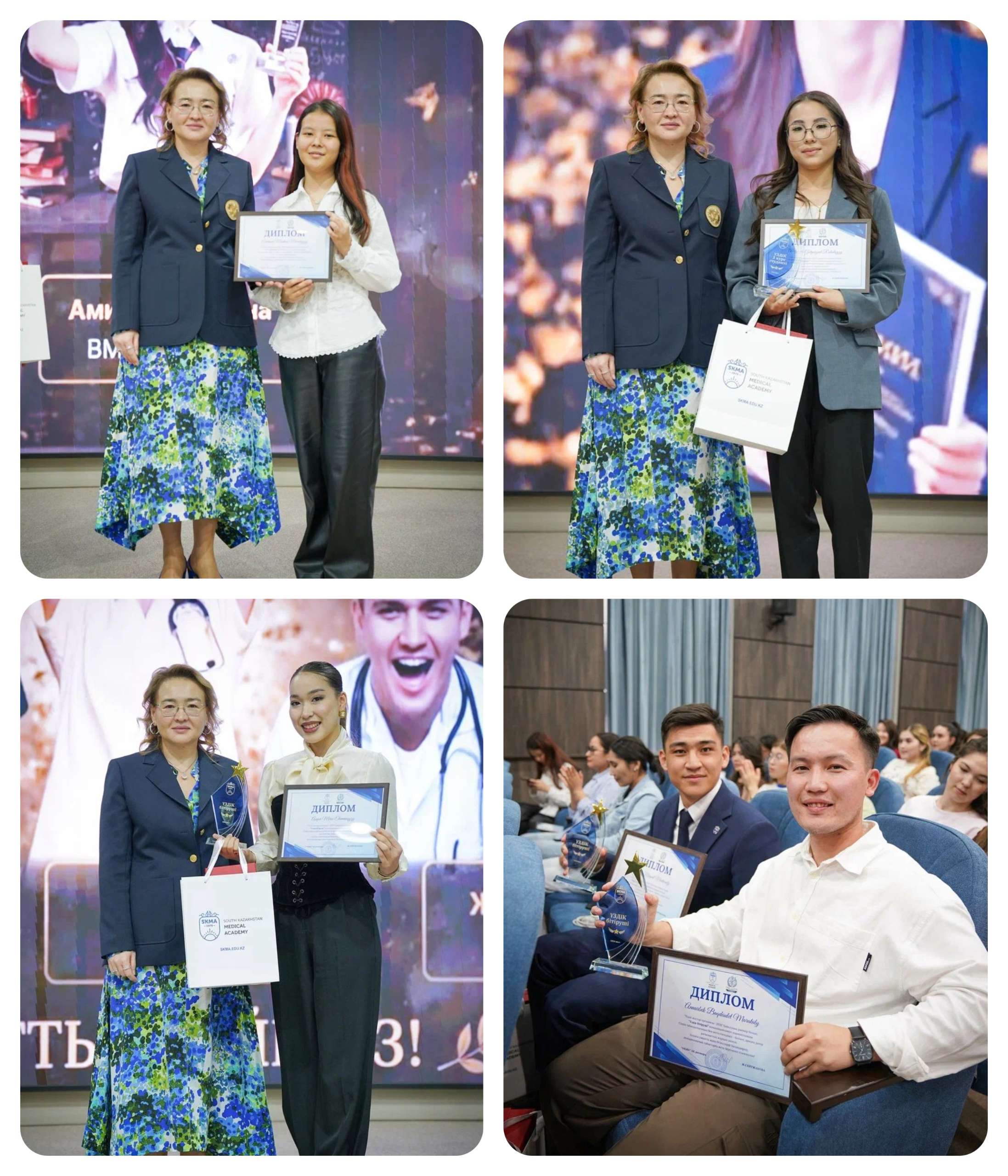 Оқу орнының тәрбие жұмыстары және әлеуметтік мәселелер жөніндегі проректоры Ербол Сәлім «Үздік студент» номинациясымен Медицина факультетінің 3-курс студенті Шахнозабану Жаналиеваны, «Үздік ұйым» номинациясымен «Birlesu» ұйымын марапаттады.