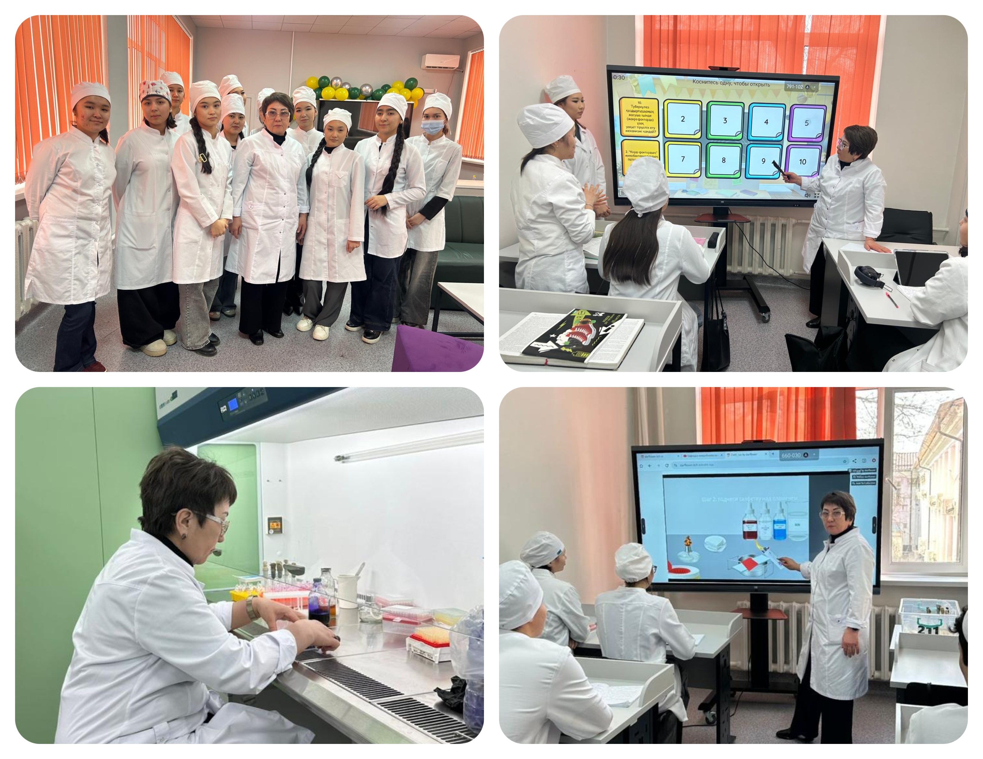 Сапар барысында студенттерге тәжірибелік және зертханалық сабақтар өткізілді. Оқу процесінде патогенді микроорганизмдердің биологиялық қасиеттері, жұқпалы аурулардың зертханалық диагностикасының заманауи әдістері, оның ішінде ПТР және серологиялық зерттеу тәсілдері қарастырылды. Сонымен қатар клиникалық жағдайларды талдау жүргізіліп, микробиологиялық зертханалық жұмыстарды орындау алгоритмдері көрсетілді.