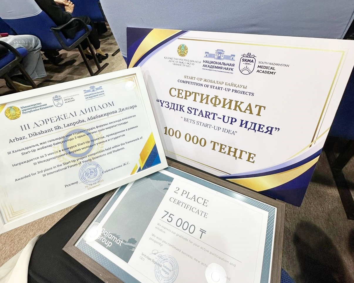 Оңтүстік Қазақстан медицина академиясының ректоры Сейтжанова Жанна Серікжанқызының атынан ІІl дәрежелі дипломмен және 100 000 тг көлеміндегі арнайы сыйлықпен марапатталды.