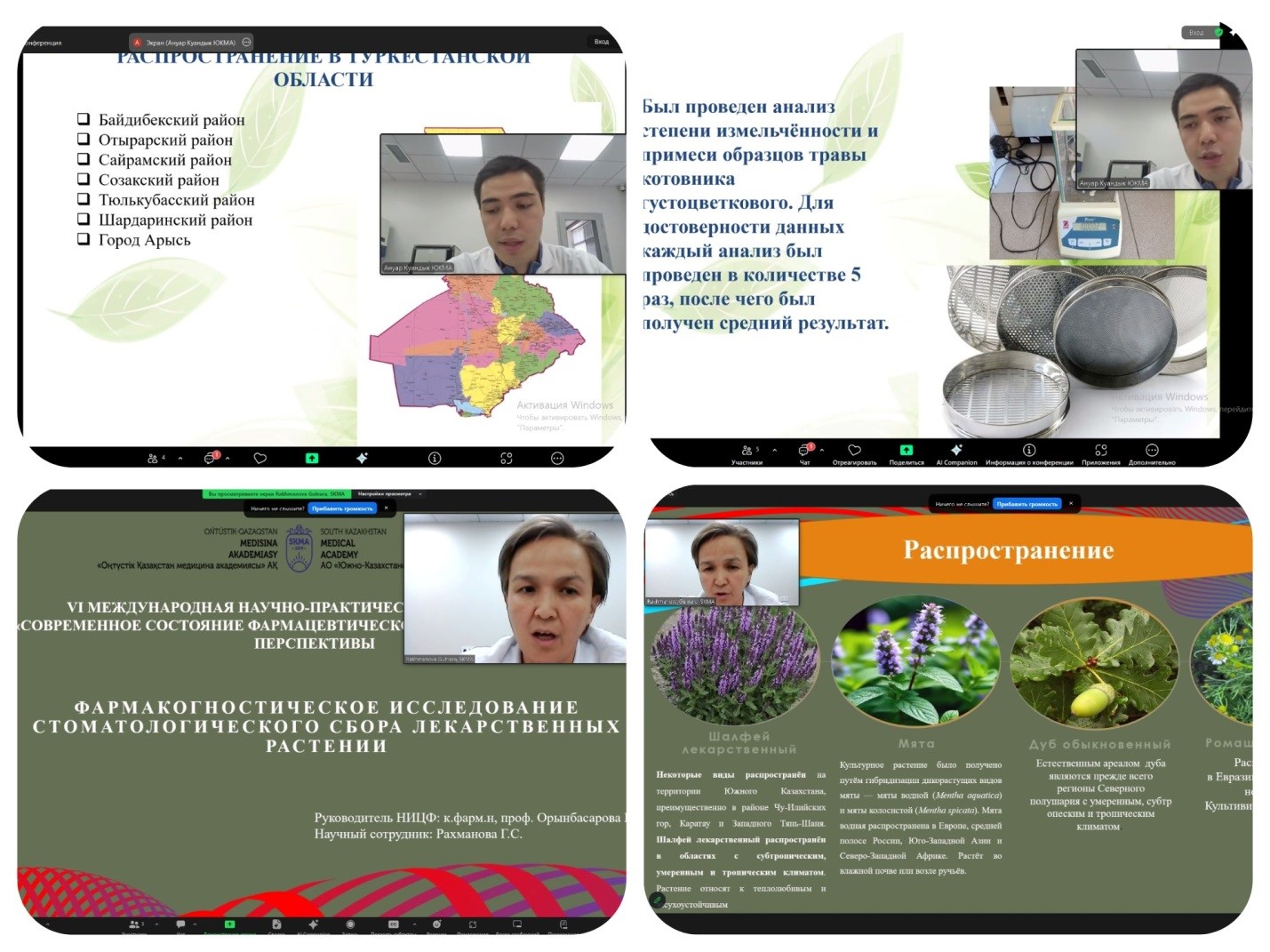 Онлайн баяндамалар 2025 жылдың 8–10 қазанында Санкт-Петербург мемлекеттік химия-фармацевтикалық университетінде (Санкт-Петербург, Ресей) өткен XXVI Халықаралық «ФИТОФАРМ–2025» съездінде өтті.