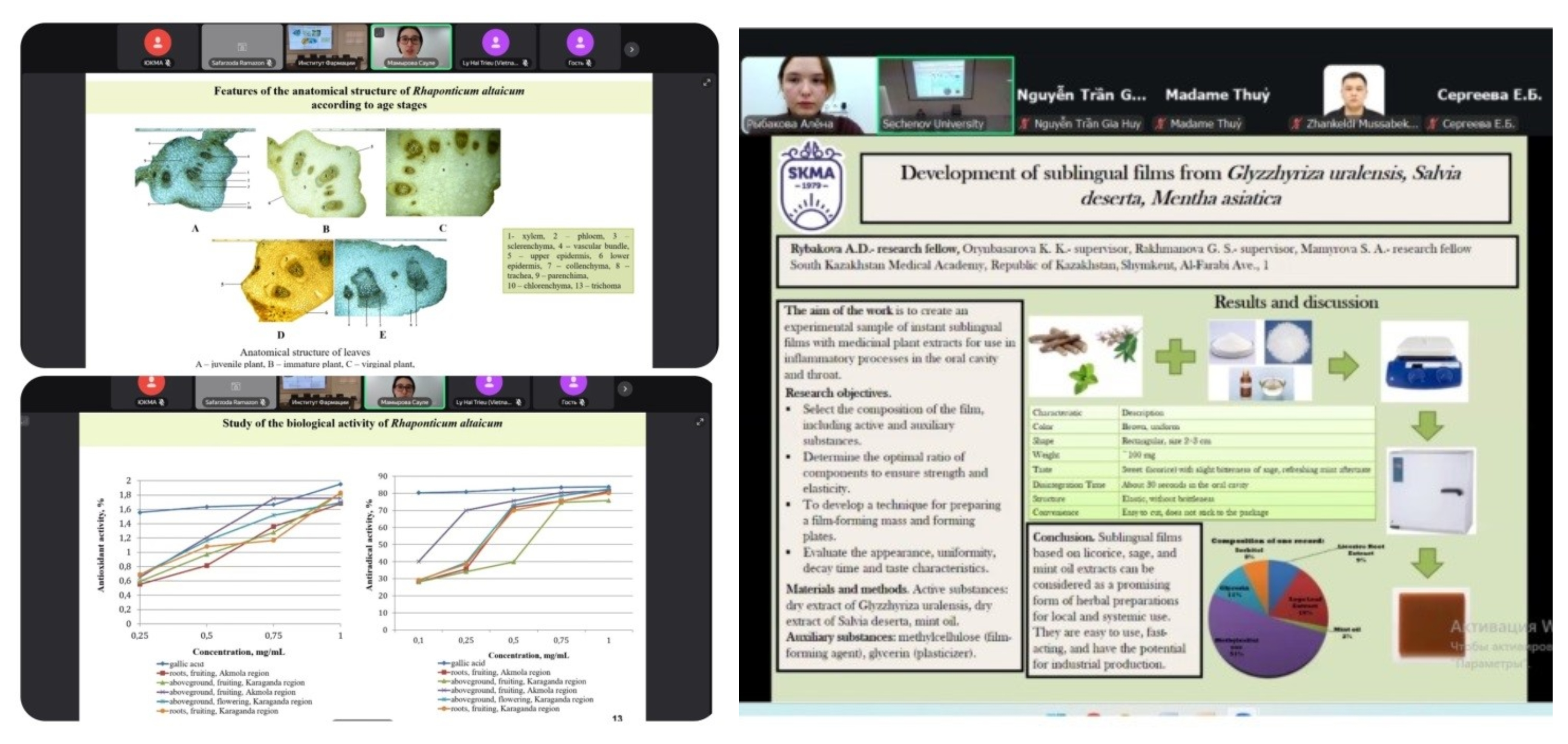 2025 жылдың 24 қазанында ғылыми қызметкерлер Сеченов университетінің А.П. Нелюбин атындағы фармация институтында (Мәскеу, Ресей) өткен «Инновациялық дәрі-дәрмектер: молекуладан пациентке дейін» атты II халықаралық конференцияда баяндама жасады.