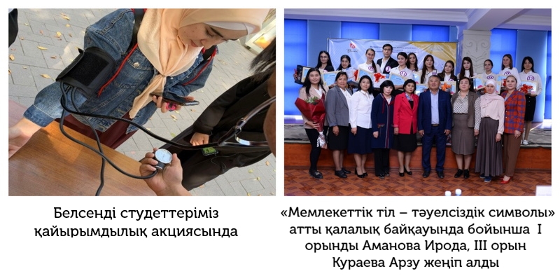 Шымкент қалалық тілдерді оқыту-әдістемелік орталығының ұйымдастыруымен мемлекеттік тілдің қолданыс аясын кеңейту, қазақ тілінің этносаралық қарым-қатынас тілі ретіндегі қызметін нығайту, мемлекеттік тілді меңгерген, қоғамдық белсенді өзге ұлт өкілдерін ынталандыру мақсатында «Мемлекеттік тіл – тәуелсіздік символы» атты қалалық байқауы өткізілді. Байқауға ОҚМА медицина факультетінің 1 курс В-ПО-02-22 тобының студенттері Кураева Арзу Руслановна мен Аманова Ирода Мирмаксудқызы қатысып, І орынды Аманова Ирода, ІІІ орын Кураева Арзу иеленіп, бағалы сыйлықтармен марапатталды