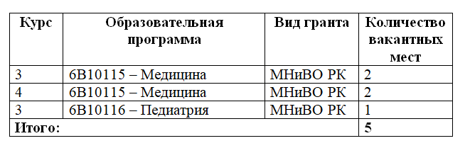 Прием документов для участия в конкурсе на присуждение вакантных государственных образовательных грантов, высвободившихся в процессе получения высшего и послевузовского образования, осуществляется с 25 декабря по 19 января 2026 года.