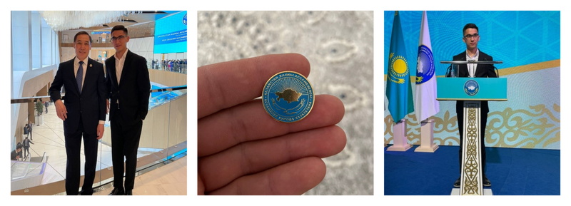 В соответствии с распоряжениями Президента РК К. Токаева от 28 марта 2022 года №292 и от 29 марта №295 с 28 по 29 апреля на ХХХІ сессию Ассемблеи народа Казахстана с повесткой «Ел Бірлік - жаңған Қазақстан тірегі» был приглашен студент 2 курса группы ЖМОБ-10-20 нашей академии, «студенческий проректор по учебно-воспитательной работе» Мейрбеков Нурболат, наш президент вручил нагрудной знак ассамблеи