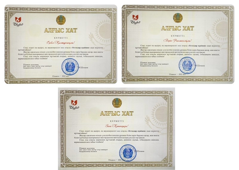Своим благодарственным письмом Президент Республики Казахстан Касым-Жомарт Токаев поздравил заведующего отделом молодежной политики Южно-Казахстанской медицинской академии Тасжанова Берика Рахманалиевича